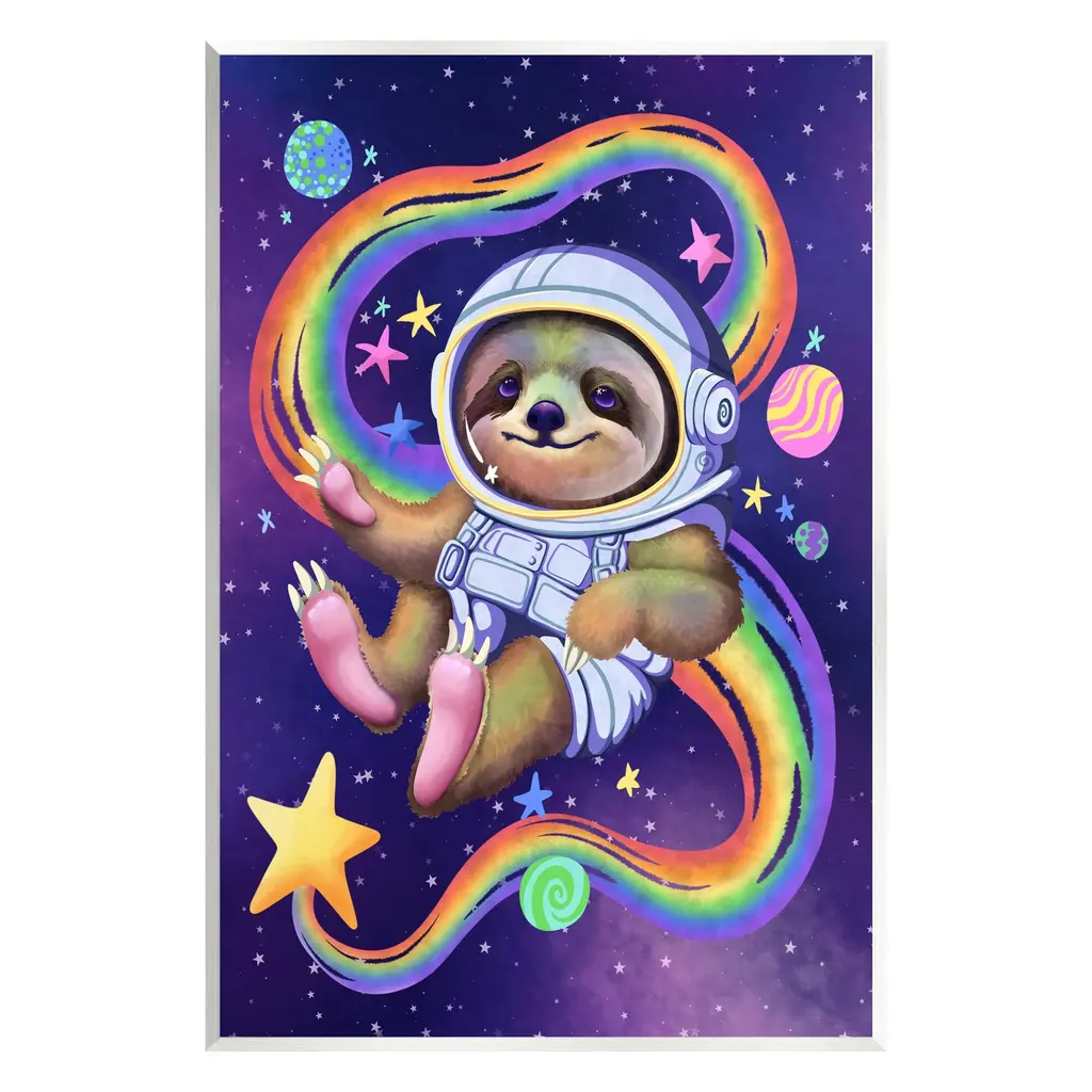 Our wall plaques start as high-quality lithograph prints mounted on durable 0.5-inch thick MDF wood. Each piece is hand finished and comes with a fresh layer of white foil on the sides to give it a crisp, clean look. Plaques arrive ready to hang without installation and come with removable plastic corners to keep them from damage in transit. Stupell Industries Wall Art is made in the USA.Features: Dimensions: 10 x 0.5 x 15 InchesWall Plaque Sizes Include Standard: 10 x 0.5 x 15 Oversized: 13 x 0.5 x 19Wall Art is Ready to Hang with Hardware Free Hanging. No installation required. For Easy Set Up Lean or Layer Artwork on Shelf or Against Wall.All of our wall plaques start off as high quality lithograph prints that are then mounted on durable 0.5 inch thick MDF wood. Each piece is hand finished and comes with a fresh layer of foil on the sides to give it a crisp clean look. Made In USA.Artwork Relates To: Animal, Mammal, Sloth, Outer Space, Rainbow, Star, Nebula, Galaxy, Planet, AstronautDesign by Carla Morrow
