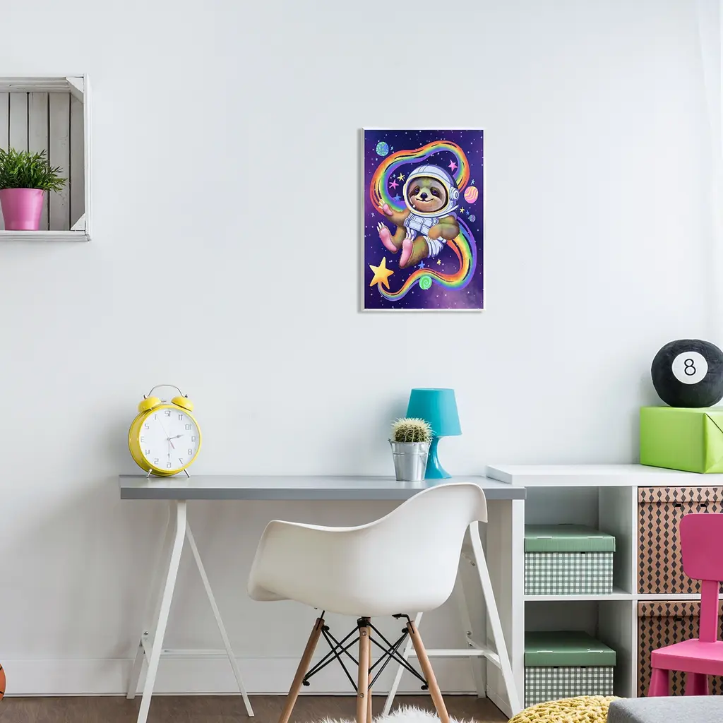 Our wall plaques start as high-quality lithograph prints mounted on durable 0.5-inch thick MDF wood. Each piece is hand finished and comes with a fresh layer of white foil on the sides to give it a crisp, clean look. Plaques arrive ready to hang without installation and come with removable plastic corners to keep them from damage in transit. Stupell Industries Wall Art is made in the USA.Features: Dimensions: 10 x 0.5 x 15 InchesWall Plaque Sizes Include Standard: 10 x 0.5 x 15 Oversized: 13 x 0.5 x 19Wall Art is Ready to Hang with Hardware Free Hanging. No installation required. For Easy Set Up Lean or Layer Artwork on Shelf or Against Wall.All of our wall plaques start off as high quality lithograph prints that are then mounted on durable 0.5 inch thick MDF wood. Each piece is hand finished and comes with a fresh layer of foil on the sides to give it a crisp clean look. Made In USA.Artwork Relates To: Animal, Mammal, Sloth, Outer Space, Rainbow, Star, Nebula, Galaxy, Planet, AstronautDesign by Carla Morrow