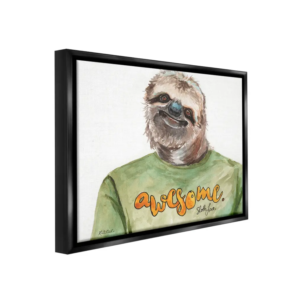 Elevate your home or office to the next level with Stupell Framed Floating Canvas Wall Art. Our premium hand-stretched canvas is mounted securely into a sturdy lightweight frame. The museum-style gap between the wrapped canvas and the box frame gives the illusion of floating artwork. Stupell Wall Art is made in the USA.Features: Dimensions: 21 x 1.7 x 17 Frame, 20 x 1.5 x 16 Canvas ArtFloating Frame Canvas Products are available in sizes 21"x17" and 31"x25". All Floating Frame Canvas Products have a 1.7" Depth.Wall Art is Ready to Hang with Hardware Free Hanging. No Installation required. For Easy Set Up Lean or Layer Artwork on Shelf or Against Wall. Artwork is Permently Fixed into the Frame.Our elevated 1.7" Thick Floating Frame is the perfect complement to our canvas style Wall Art. We use only the highest quality inks in house with industry leading printing solutions. Canvas is hand stretched over a durable wood foundation and then mounted securly into a Modern Box Frame. Made in the USA.Artwork Relates To: Animal, Wildlife, Mammal, Sloth, Three-Toed Sloth, AwesomeDesign by Jennifer Redstreake