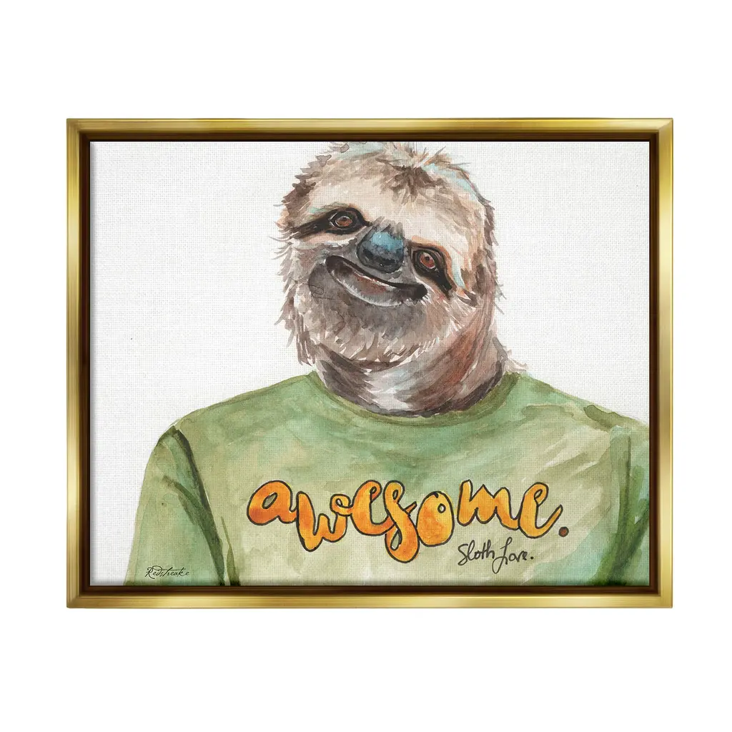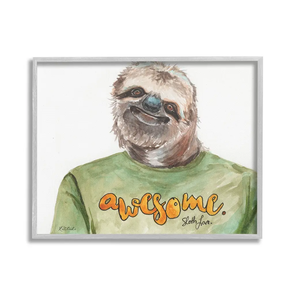 Add dimension to any room with our textured Framed Giclee Artwork. Our framed artwork is securely mounted into a 1.5-inch thick wood grain frame and ready to hang. Frames are available in three alluring styles: black, gray farmhouse and white. In addition, you should check out our oversized options if you want a statement piece. Stupell Wall Art is made in the USA.Features: Dimensions: 14 x 1.5 x 11 FramedFramed Giclee Products are available in the sizes 14"x11", 20"x16" or 30"x24". All Framed Giclee Products have a 1.5" Depth. Wall Art is Ready to Hang with Hardware Free Hanging. No installation required. For Easy Set Up Lean or Layer Artwork on Shelf or Against Wall.Our giclée prints are carefully mounted on a durable MDF backing, and then perfectly finished in a 1.5 inch thick woodgrain frame. Mounted frame colors include black, gray farmhouse and white. Made In USA.Artwork Relates To: Animal, Wildlife, Mammal, Sloth, Three-Toed Sloth, AwesomeDesign by Jennifer Redstreake