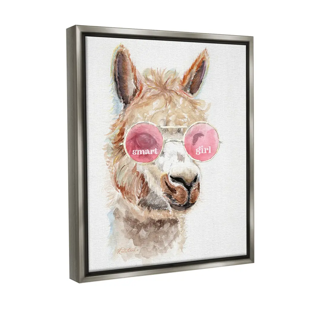 Elevate your home or office to the next level with Stupell Framed Floating Canvas Wall Art. Our premium hand-stretched canvas is mounted securely into a sturdy lightweight frame. The museum-style gap between the wrapped canvas and the box frame gives the illusion of floating artwork. Stupell Wall Art is made in the USA.Features: Dimensions: 17 x 1.7 x 21 Frame, 16 x 1.5 x 20 Canvas ArtFloating Frame Canvas Products are available in sizes 17"x21" and 25"x31". All Floating Frame Canvas Products have a 1.7" Depth.Wall Art is Ready to Hang with Hardware Free Hanging. No Installation required. For Easy Set Up Lean or Layer Artwork on Shelf or Against Wall. Artwork is Permently Fixed into the Frame.Our elevated 1.7" Thick Floating Frame is the perfect complement to our canvas style Wall Art. We use only the highest quality inks in house with industry leading printing solutions. Canvas is hand stretched over a durable wood foundation and then mounted securly into a Modern Box Frame. Made in the USA.Artwork Relates To: Snout, Animal, Mammal, Llama, , Farm, Country, Smart GirlDesign by Jennifer Redstreake
