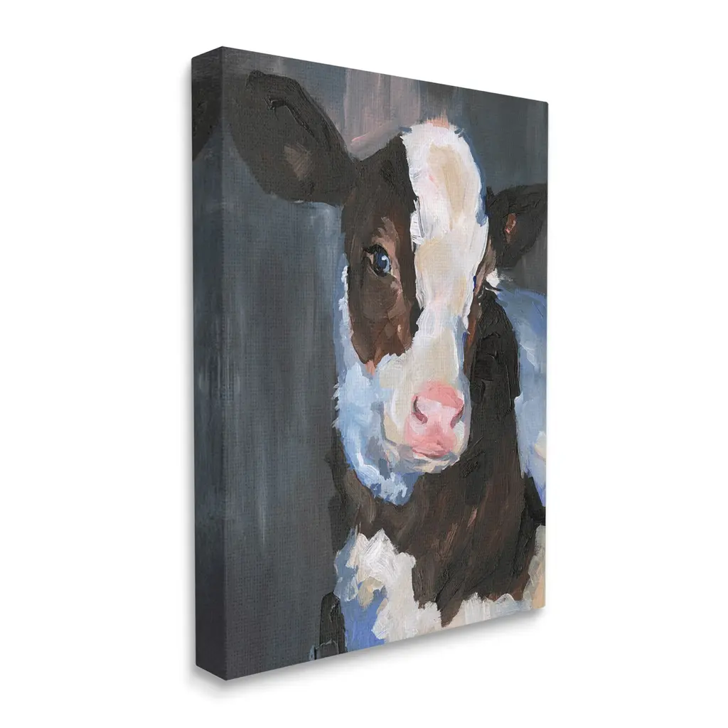 Stupell Smiley Posing Cow Farm Cattle Animal Painting Canvas Wall Art - Grey - 16 X 20