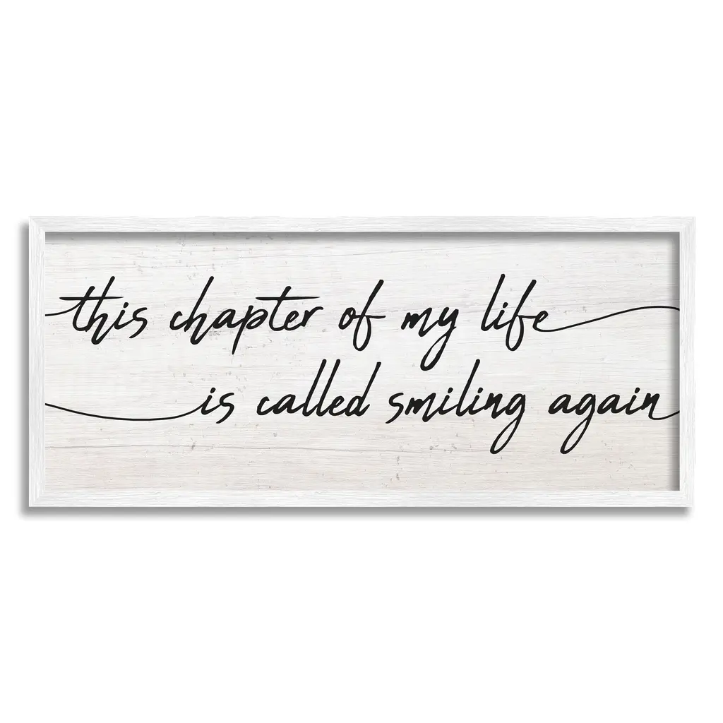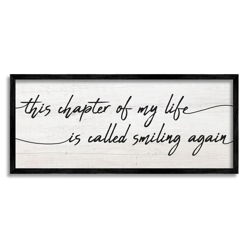 Stupell Smiling Again Motivational Healing Calligraphy Rustic Detail Framed Wall Art - White - 24 X 10 - Black