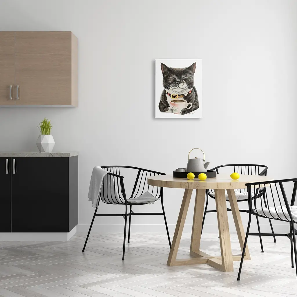 We create our stretched canvas to the highest standards. Using only the highest quality inks and canvas on Mimaki printers, we hand-cut and stretch each piece over a 1.5-inch thick wooden frame for hanging. As a result, the art comes ready to hang on the sturdy ledge with no installation required. Stupell Wall Art is made in the USA.Features: Dimensions: 16 x 1.5 x 20 InchesStretched Canvas Sizes Include Standard: 16 x 1.5 x 20 Large: 20 x 1.5 x 30 X-Large: 30 x 1.5 x 40 Oversized: 36 x 1.5 x 48Wall Art is Ready to Hang with Hardware Free Hanging. No installation required. For Easy Set Up Lean or Layer Artwork on Shelf or Against Wall.Our stretched canvas is created with the highest standards. We use only the highest quality inks and canvas on our in house Mimaki printers, and then hand cut and stretch each piece over a 1.5 inch thick wooden frame for hanging. Made In USA.Artwork Relates To: Animal, Mammal, Wildlife, Coffee, Coffee Mug, CatDesign by Holly Simental