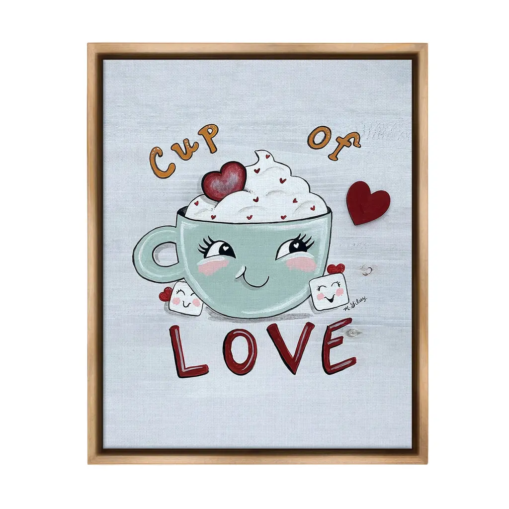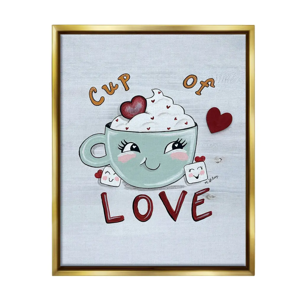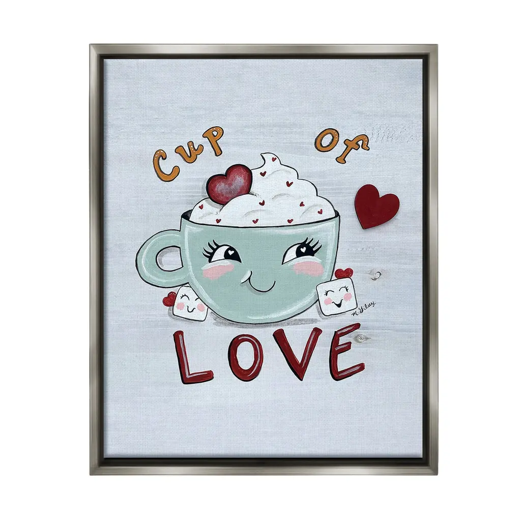 Elevate your home or office to the next level with Stupell Framed Floating Canvas Wall Art. Our premium hand-stretched canvas is mounted securely into a sturdy lightweight frame. The museum-style gap between the wrapped canvas and the box frame gives the illusion of floating artwork. Stupell Wall Art is made in the USA.Features: Dimensions: 17 x 1.7 x 21 Frame, 16 x 1.5 x 20 Canvas ArtFloating Frame Canvas Products are available in sizes 17"x21" and 25"x31". All Floating Frame Canvas Products have a 1.7" Depth.Wall Art is Ready to Hang with Hardware Free Hanging. No Installation required. For Easy Set Up Lean or Layer Artwork on Shelf or Against Wall. Artwork is Permently Fixed into the Frame.Our elevated 1.7" Thick Floating Frame is the perfect complement to our canvas style Wall Art. We use only the highest quality inks in house with industry leading printing solutions. Canvas is hand stretched over a durable wood foundation and then mounted securly into a Modern Box Frame. Made in the USA.Artwork Relates To: Dessert, Food, Beverage, Coffee, Mug, Cocoa, Whipped Cream, Heart, Cup Of LoveDesign by Michelle Gilsey