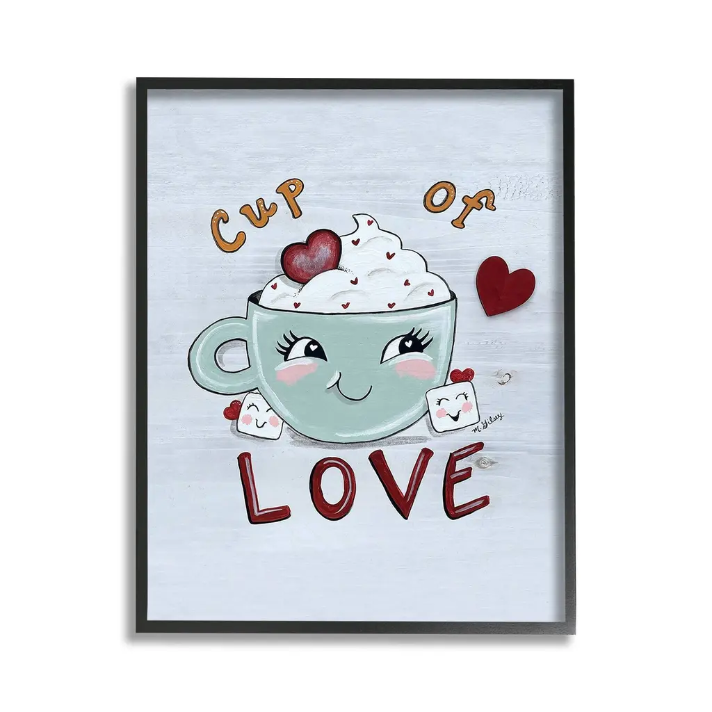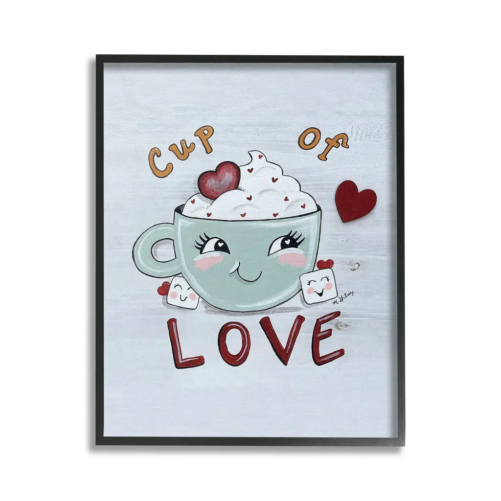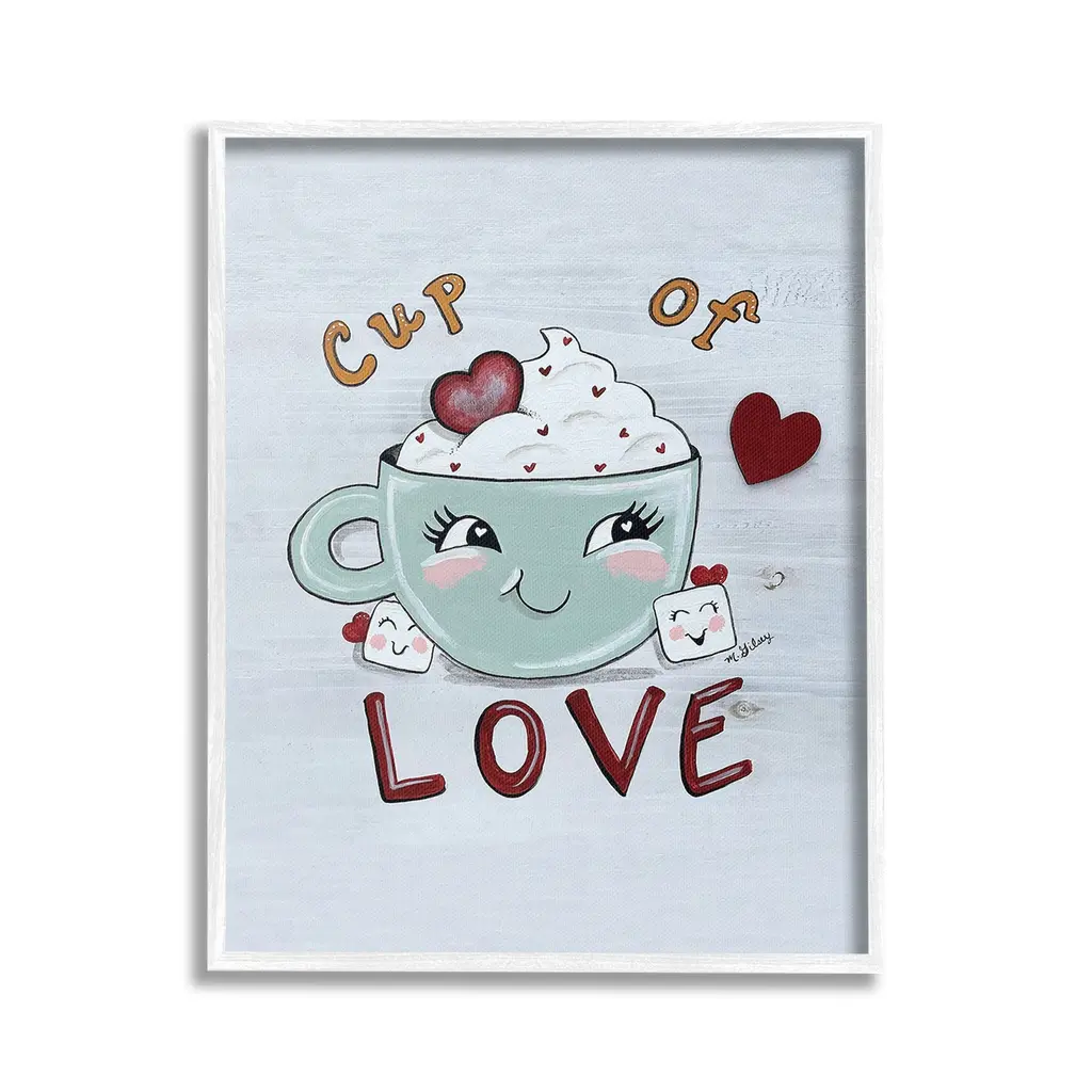 Elevate your home or office to the next level with Stupell Framed Floating Canvas Wall Art. Our premium hand-stretched canvas is mounted securely into a sturdy lightweight frame. The museum-style gap between the wrapped canvas and the box frame gives the illusion of floating artwork. Stupell Wall Art is made in the USA.Features: Dimensions: 17 x 1.7 x 21 Frame, 16 x 1.5 x 20 Canvas ArtFloating Frame Canvas Products are available in sizes 17"x21" and 25"x31". All Floating Frame Canvas Products have a 1.7" Depth.Wall Art is Ready to Hang with Hardware Free Hanging. No Installation required. For Easy Set Up Lean or Layer Artwork on Shelf or Against Wall. Artwork is Permently Fixed into the Frame.Our elevated 1.7" Thick Floating Frame is the perfect complement to our canvas style Wall Art. We use only the highest quality inks in house with industry leading printing solutions. Canvas is hand stretched over a durable wood foundation and then mounted securly into a Modern Box Frame. Made in the USA.Artwork Relates To: Dessert, Food, Beverage, Coffee, Mug, Cocoa, Whipped Cream, Heart, Cup Of LoveDesign by Michelle Gilsey