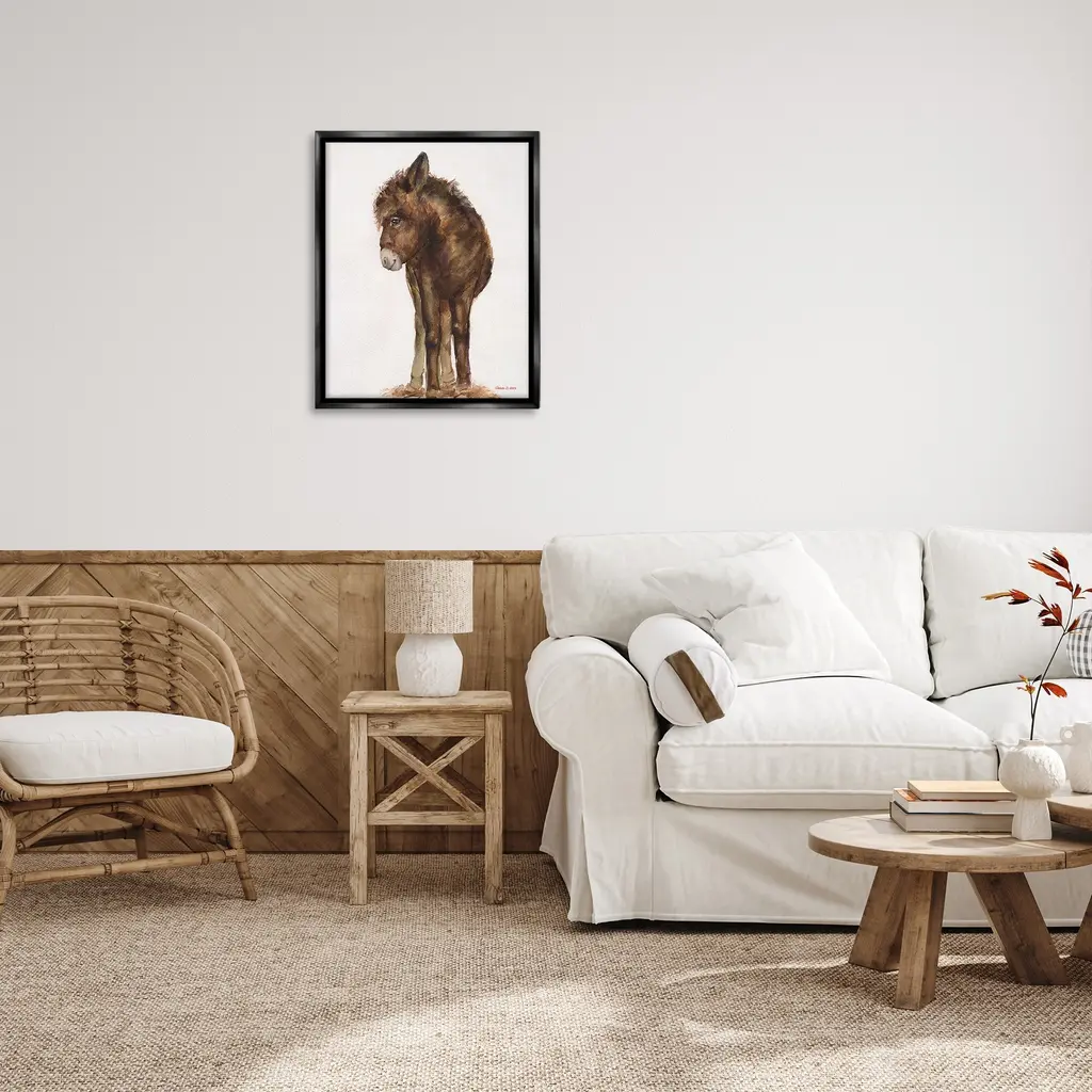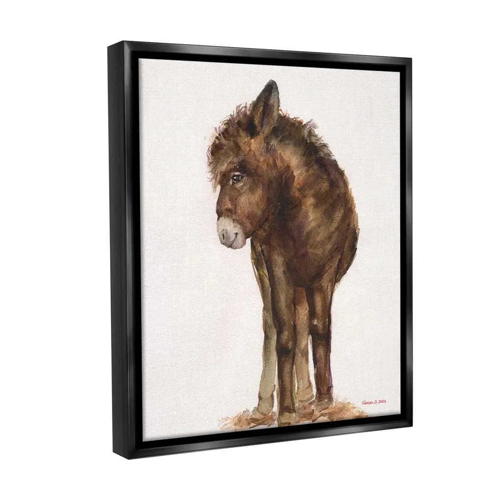Stupell Smiling Donkey Foal Framed Floater Canvas Wall Art Design By Georgedyachenkoart - 25 X 31 - Black