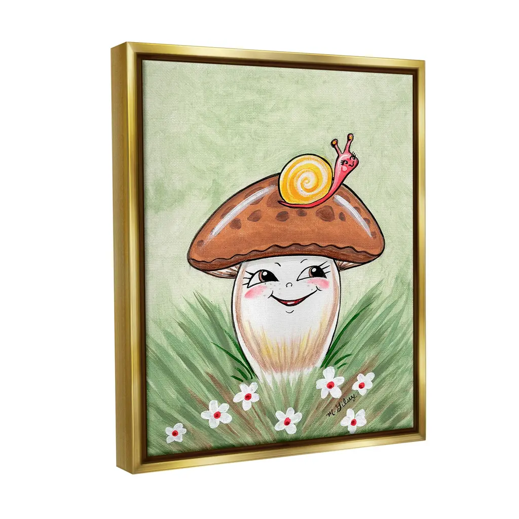 Stupell Smiling Mushroom & Snail Framed Floater Canvas Wall Art Design By Michelle Gilsey - 25 X 31 - Gold