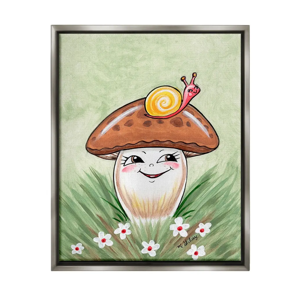 Elevate your home or office to the next level with Stupell Framed Floating Canvas Wall Art. Our premium hand-stretched canvas is mounted securely into a sturdy lightweight frame. The museum-style gap between the wrapped canvas and the box frame gives the illusion of floating artwork. Stupell Wall Art is made in the USA.Features: Dimensions: 17 x 1.7 x 21 Frame, 16 x 1.5 x 20 Canvas ArtFloating Frame Canvas Products are available in sizes 17"x21" and 25"x31". All Floating Frame Canvas Products have a 1.7" Depth.Wall Art is Ready to Hang with Hardware Free Hanging. No Installation required. For Easy Set Up Lean or Layer Artwork on Shelf or Against Wall. Artwork is Permently Fixed into the Frame.Our elevated 1.7" Thick Floating Frame is the perfect complement to our canvas style Wall Art. We use only the highest quality inks in house with industry leading printing solutions. Canvas is hand stretched over a durable wood foundation and then mounted securly into a Modern Box Frame. Made in the USA.Artwork Relates To: Woodland, Forest, Mushroom, Plant, Botanical, Animal, Snail, Flower, Floral, Meadow, NatureDesign by Michelle Gilsey