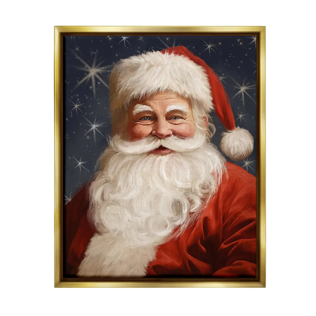 Elevate your home or office to the next level with Stupell Framed Floating Canvas Wall Art. Our premium hand-stretched canvas is mounted securely into a sturdy lightweight frame. The museum-style gap between the wrapped canvas and the box frame gives the illusion of floating artwork. Stupell Wall Art is made in the USA.Features: Dimensions: 17 x 1.7 x 21 Frame, 16 x 1.5 x 20 Canvas ArtFloating Frame Canvas Products are available in sizes 17"x21" and 25"x31". All Floating Frame Canvas Products have a 1.7" Depth.Wall Art is Ready to Hang with Hardware Free Hanging. No Installation required. For Easy Set Up Lean or Layer Artwork on Shelf or Against Wall. Artwork is Permently Fixed into the Frame.Our elevated 1.7" Thick Floating Frame is the perfect complement to our canvas style Wall Art. We use only the highest quality inks in house with industry leading printing solutions. Canvas is hand stretched over a durable wood foundation and then mounted securly into a Modern Box Frame. Made in the USA.Artwork Relates To: Christmas, Santa Claus, Person, Gift, Present, Holiday, Winter, Snow, Snowflake, Star, PatternDesign by Ramona Murdock