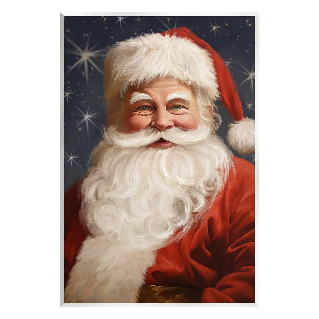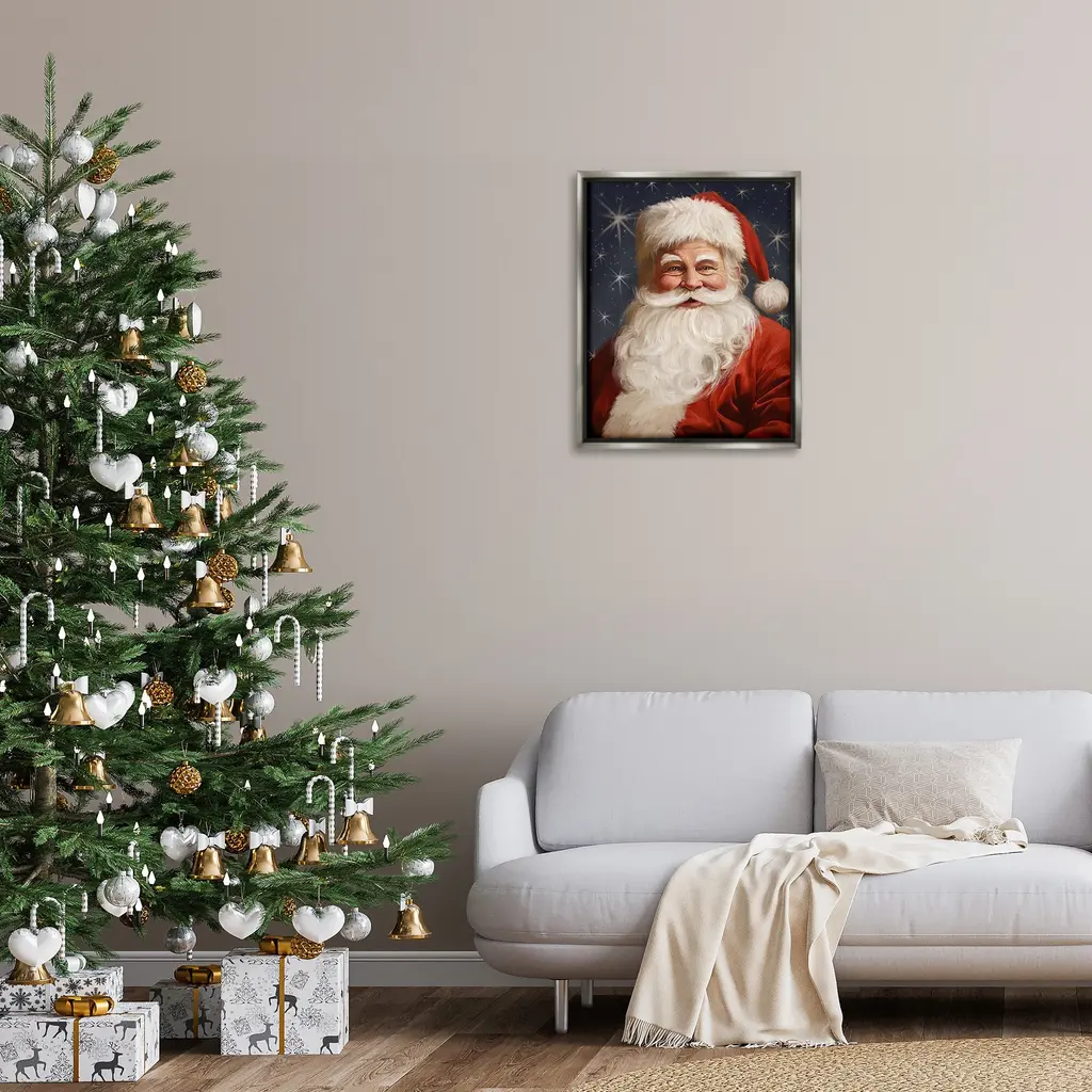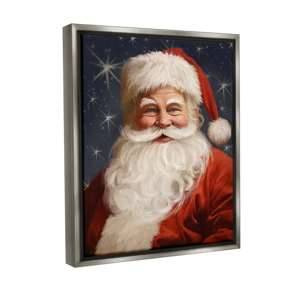 Elevate your home or office to the next level with Stupell Framed Floating Canvas Wall Art. Our premium hand-stretched canvas is mounted securely into a sturdy lightweight frame. The museum-style gap between the wrapped canvas and the box frame gives the illusion of floating artwork. Stupell Wall Art is made in the USA.Features: Dimensions: 17 x 1.7 x 21 Frame, 16 x 1.5 x 20 Canvas ArtFloating Frame Canvas Products are available in sizes 17"x21" and 25"x31". All Floating Frame Canvas Products have a 1.7" Depth.Wall Art is Ready to Hang with Hardware Free Hanging. No Installation required. For Easy Set Up Lean or Layer Artwork on Shelf or Against Wall. Artwork is Permently Fixed into the Frame.Our elevated 1.7" Thick Floating Frame is the perfect complement to our canvas style Wall Art. We use only the highest quality inks in house with industry leading printing solutions. Canvas is hand stretched over a durable wood foundation and then mounted securly into a Modern Box Frame. Made in the USA.Artwork Relates To: Christmas, Santa Claus, Person, Gift, Present, Holiday, Winter, Snow, Snowflake, Star, PatternDesign by Ramona Murdock