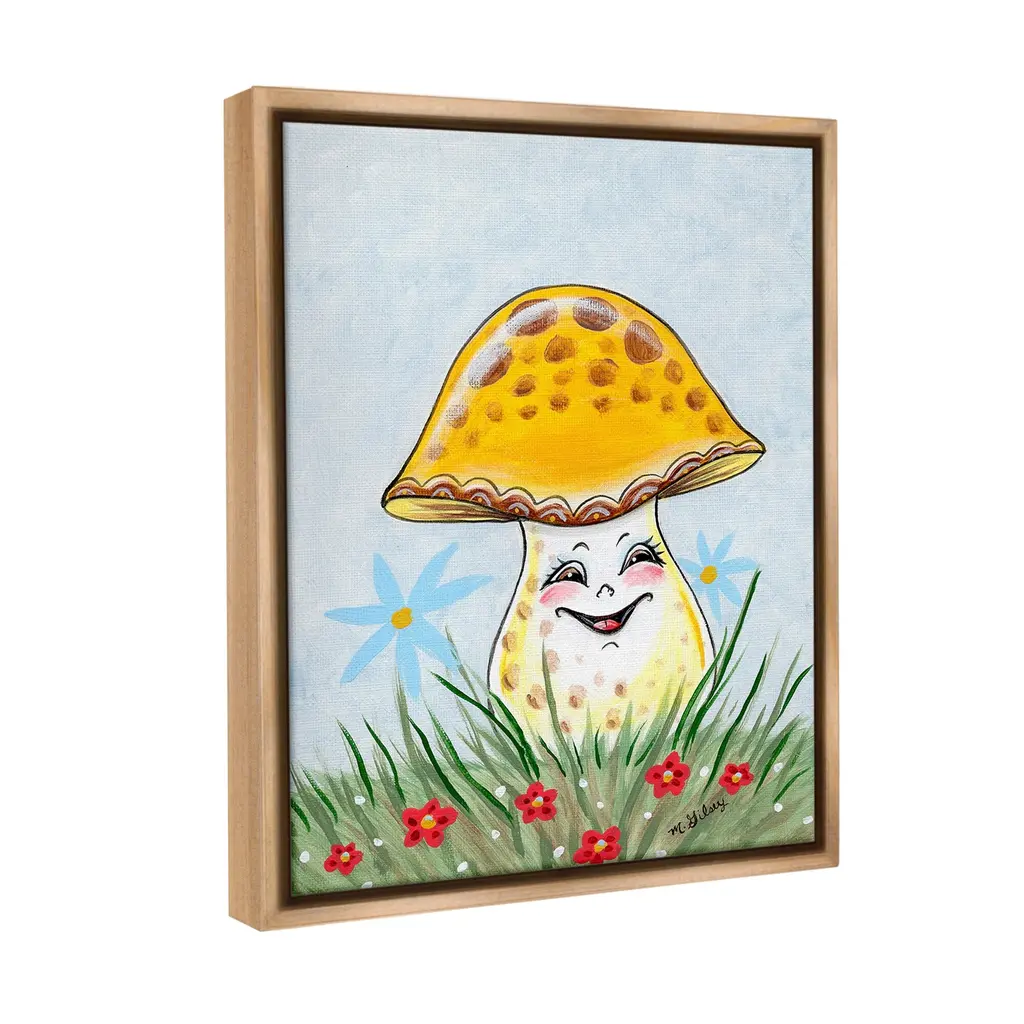 Stupell Smiling Yellow Mushroom Framed Floater Canvas Wall Art Design By Michelle Gilsey - 25 X 31 - Brown