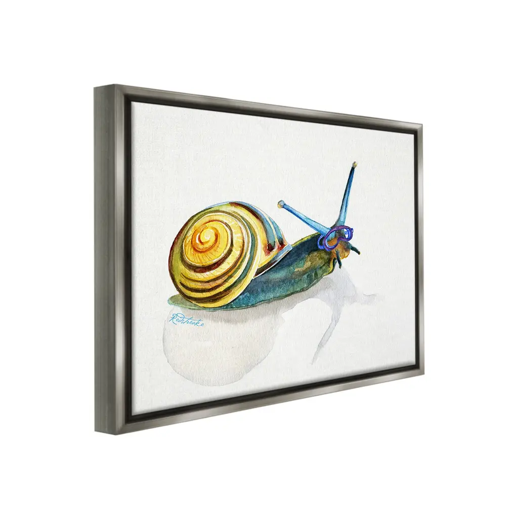 Elevate your home or office to the next level with Stupell Framed Floating Canvas Wall Art. Our premium hand-stretched canvas is mounted securely into a sturdy lightweight frame. The museum-style gap between the wrapped canvas and the box frame gives the illusion of floating artwork. Stupell Wall Art is made in the USA.Features: Dimensions: 21 x 1.7 x 17 Frame, 20 x 1.5 x 16 Canvas ArtFloating Frame Canvas Products are available in sizes 21"x17" and 31"x25". All Floating Frame Canvas Products have a 1.7" Depth.Wall Art is Ready to Hang with Hardware Free Hanging. No Installation required. For Easy Set Up Lean or Layer Artwork on Shelf or Against Wall. Artwork is Permently Fixed into the Frame.Our elevated 1.7" Thick Floating Frame is the perfect complement to our canvas style Wall Art. We use only the highest quality inks in house with industry leading printing solutions. Canvas is hand stretched over a durable wood foundation and then mounted securly into a Modern Box Frame. Made in the USA.Artwork Relates To: Animal, Invertebrate, Snail, Goggles, Swimming, Minimal, SnorkelingDesign by Jennifer Redstreake