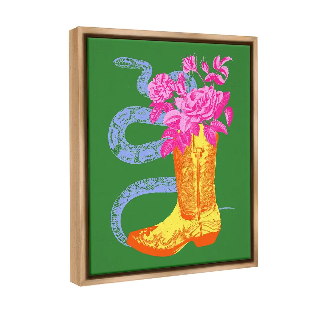 Elevate your home or office to the next level with Stupell Framed Floating Canvas Wall Art. Our premium hand-stretched canvas is mounted securely into a sturdy lightweight frame. The museum-style gap between the wrapped canvas and the box frame gives the illusion of floating artwork. Stupell Wall Art is made in the USA.Features: Dimensions: 17 x 1.7 x 21 Frame, 16 x 1.5 x 20 Canvas ArtFloating Frame Canvas Products are available in sizes 17"x21" and 25"x31". All Floating Frame Canvas Products have a 1.7" Depth.Wall Art is Ready to Hang with Hardware Free Hanging. No Installation required. For Easy Set Up Lean or Layer Artwork on Shelf or Against Wall. Artwork is Permently Fixed into the Frame.Our elevated 1.7" Thick Floating Frame is the perfect complement to our canvas style Wall Art. We use only the highest quality inks in house with industry leading printing solutions. Canvas is hand stretched over a durable wood foundation and then mounted securly into a Modern Box Frame. Made in the USA.Artwork Relates To: Floral, Pattern, Flower, Plant, Cowboy Boot, Animal, Reptile, Snake, Bouquet, Sunflower, Abstract, ModernDesign by Victoria Barnes