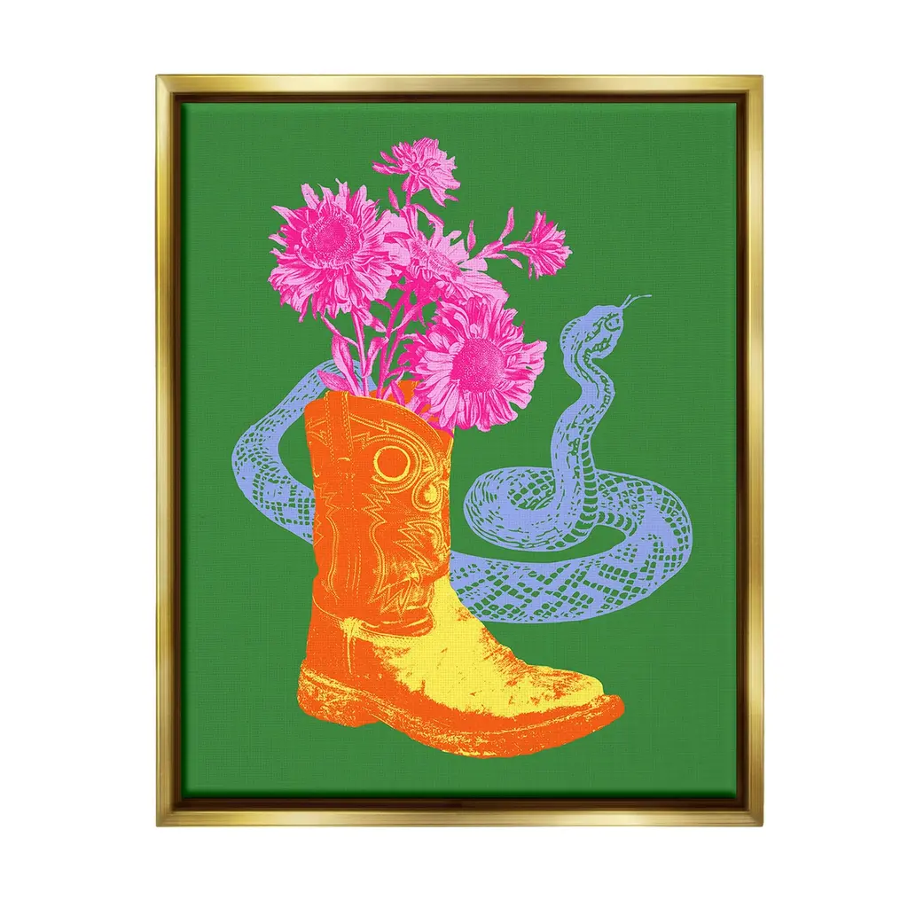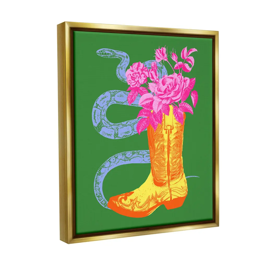 Stupell Snake & Boot Bouquet Framed Floater Canvas Wall Art Design By Victoria Barnes - 25 X 31 - Gold
