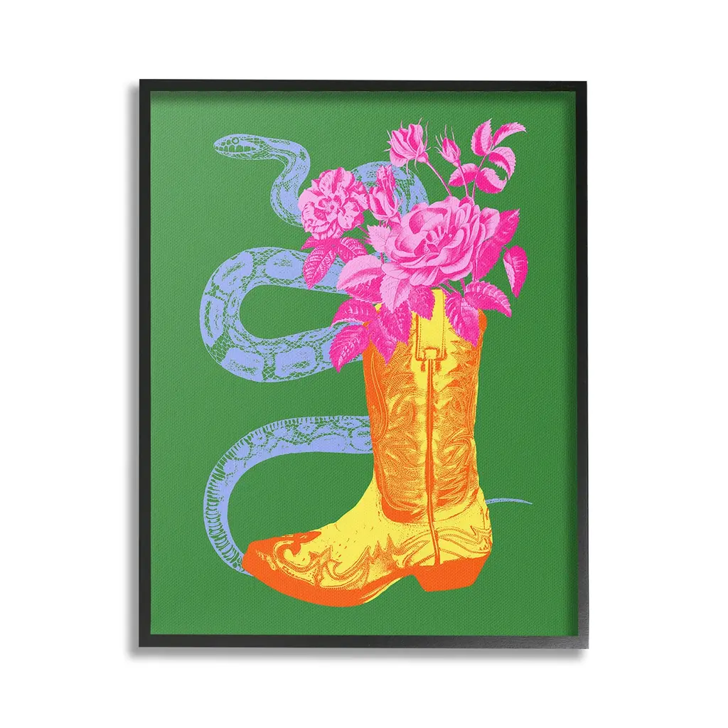 Add dimension to any room with our textured Framed Giclee Artwork. Our framed artwork is securely mounted into a 1.5-inch thick wood grain frame and ready to hang. Frames are available in three alluring styles: black, gray farmhouse and white. In addition, you should check out our oversized options if you want a statement piece. Stupell Wall Art is made in the USA.Features: Dimensions: 11 x 1.5 x 14 FramedFramed Giclee Products are available in the sizes 11"x14", 16"x20" or 24"x30". All Framed Giclee Products have a 1.5" Depth. Wall Art is Ready to Hang with Hardware Free Hanging. No installation required. For Easy Set Up Lean or Layer Artwork on Shelf or Against Wall.Our giclée prints are carefully mounted on a durable MDF backing, and then perfectly finished in a 1.5 inch thick woodgrain frame. Mounted frame colors include black, gray farmhouse and white. Made In USA.Artwork Relates To: Floral, Pattern, Flower, Plant, Cowboy Boot, Animal, Reptile, Snake, Bouquet, Sunflower, Abstract, ModernDesign by Victoria Barnes