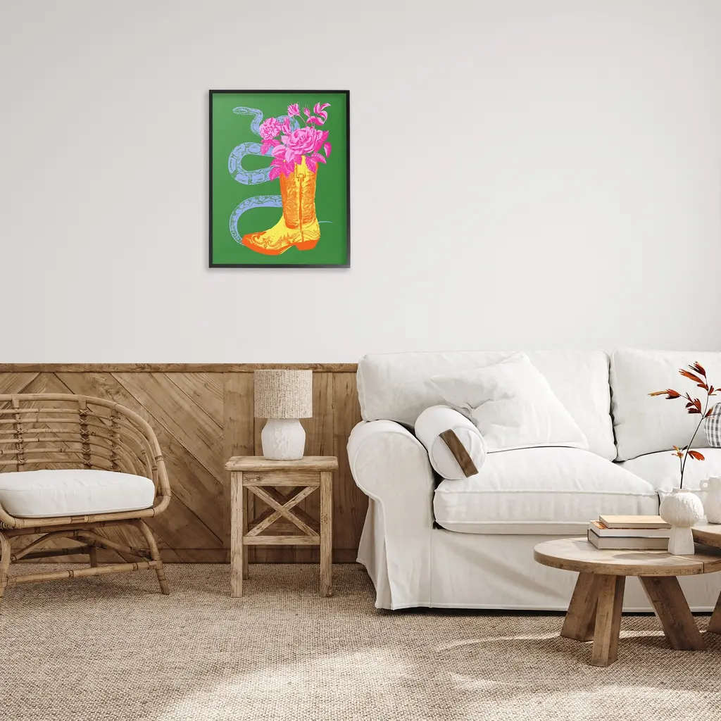 Stupell Snake & Boot Bouquet Framed Giclee Art Design By Victoria Barnes - 24 X 30 - Black