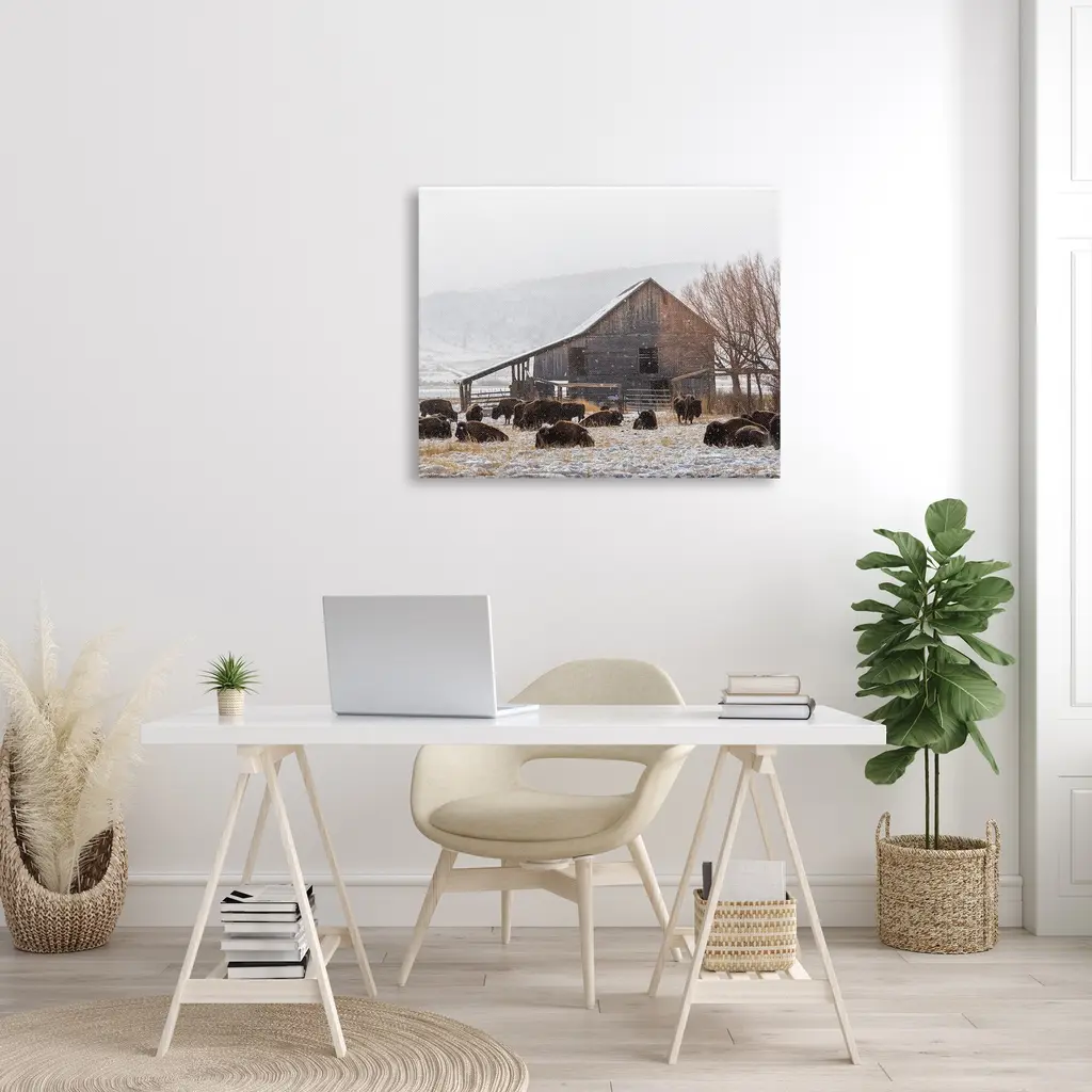 Stupell Snow Dusted Barn Buffalo Bison Rural Farm Canvas Wall Art, Design By Jeff Poe Photography - 40 X 30