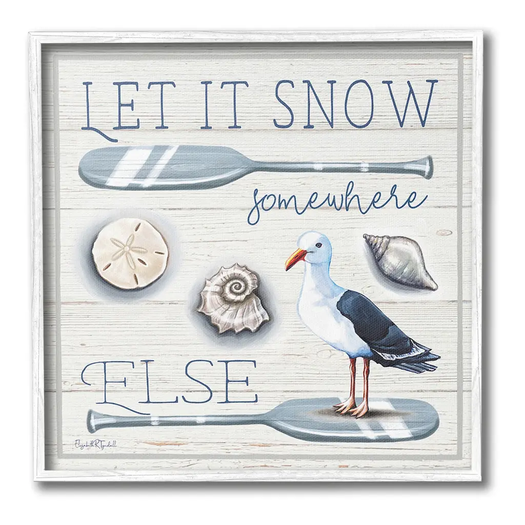 Elevate your home or office to the next level with Stupell Framed Floating Canvas Wall Art. Our premium hand-stretched canvas is mounted securely into a sturdy lightweight frame. The museum-style gap between the wrapped canvas and the box frame gives the illusion of floating artwork. Stupell Wall Art is made in the USA.Features: Dimensions: 18 x 1.7 x 18 Frame, 17 x 1.5 x 17 Canvas ArtFloating Frame Canvas Products are available in sizes 18"x18" and 25"x25". All Floating Frame Canvas Products have a 1.7" Depth.Wall Art is Ready to Hang with Hardware Free Hanging. No Installation required. For Easy Set Up Lean or Layer Artwork on Shelf or Against Wall. Artwork is Permently Fixed into the Frame.Our elevated 1.7" Thick Floating Frame is the perfect complement to our canvas style Wall Art. We use only the highest quality inks in house with industry leading printing solutions. Canvas is hand stretched over a durable wood foundation and then mounted securly into a Modern Box Frame. Made in the USA.Artwork Relates To: Oars, Cutlery, Paddle, Animal, Seagull, Seashell, Sand Dollar, Seagull, Winter, Holiday, SeasonalDesign by Elizabeth Tyndall