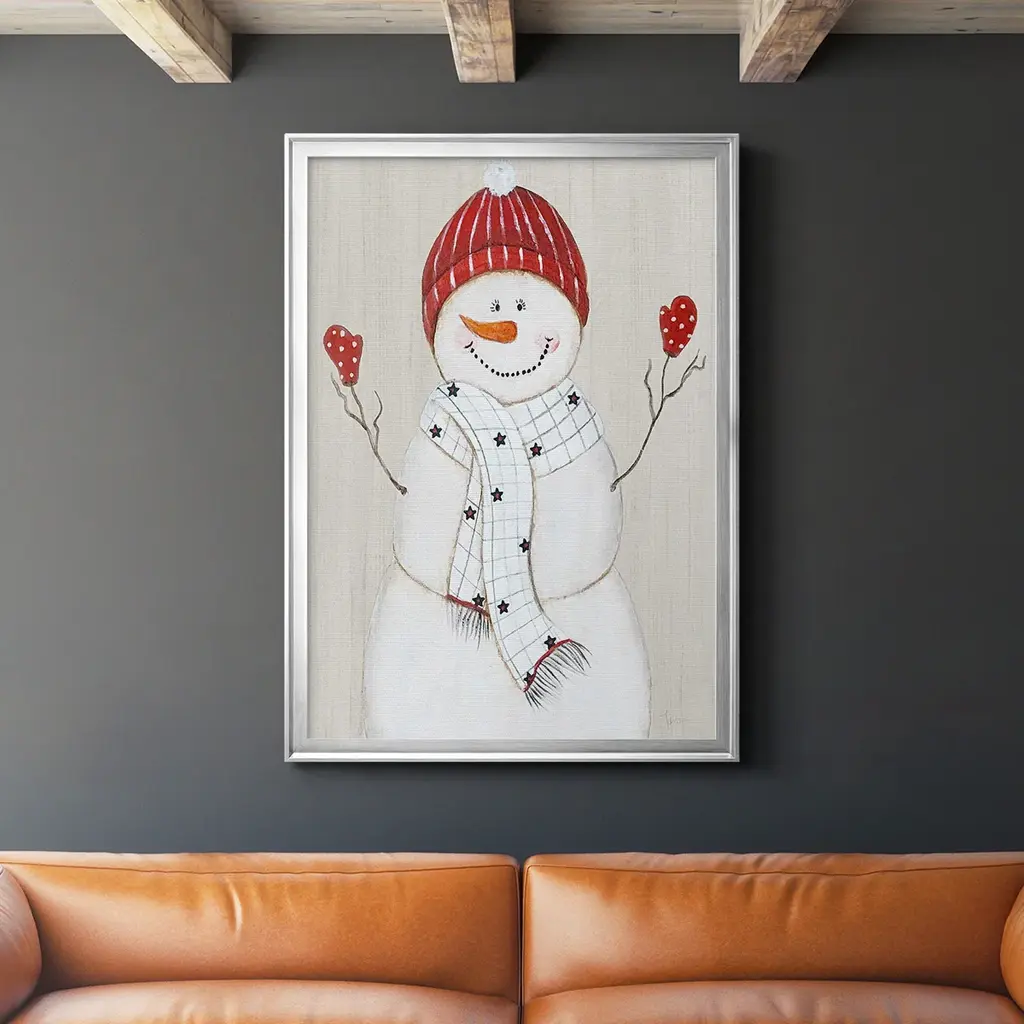 Stupell Snowman Wink Winter Birds Rustic Plaid Scarf Framed Wall Art - Multi-Color - 10 X 24 - Black