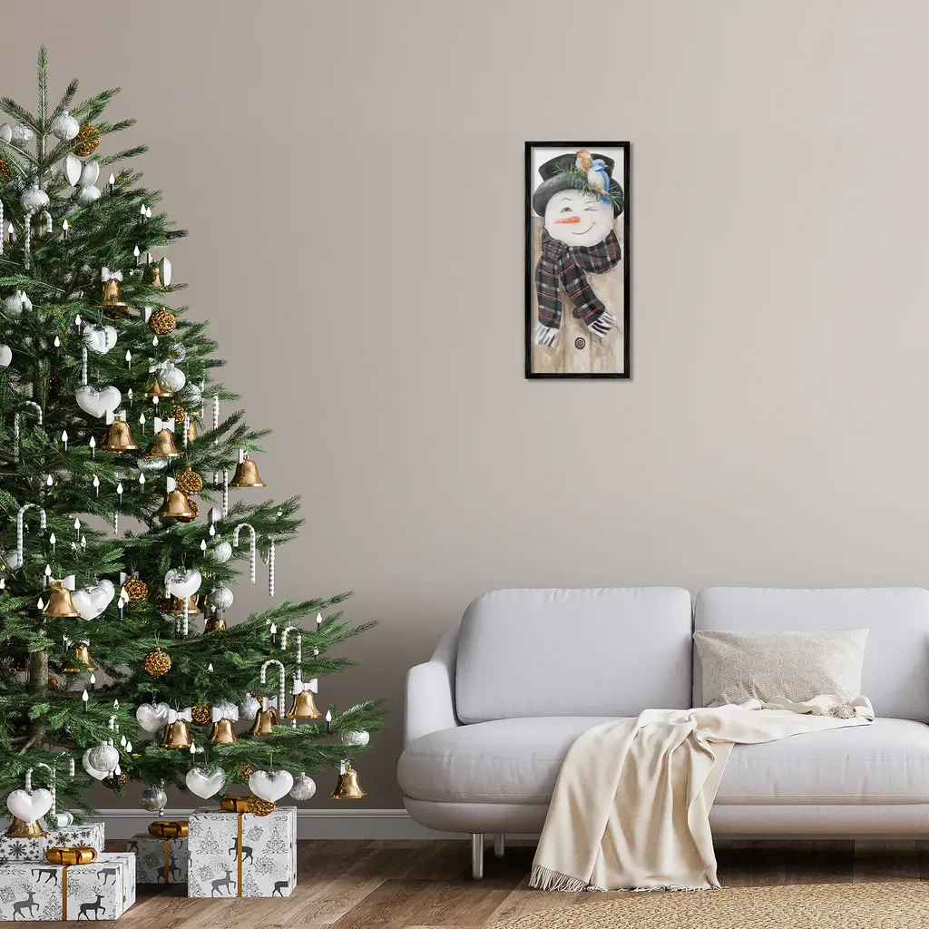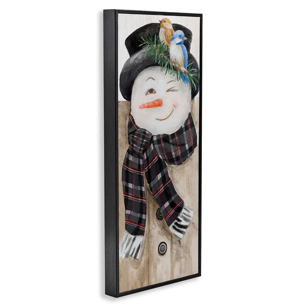 Stupell Snowman Wink Winter Birds Rustic Plaid Scarf Framed Wall Art - Multi-Color - 10 X 24 - White