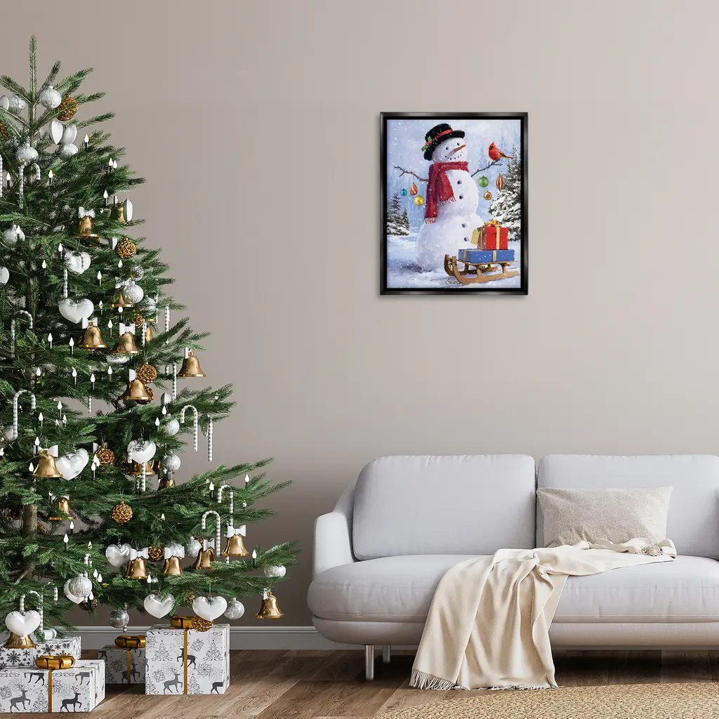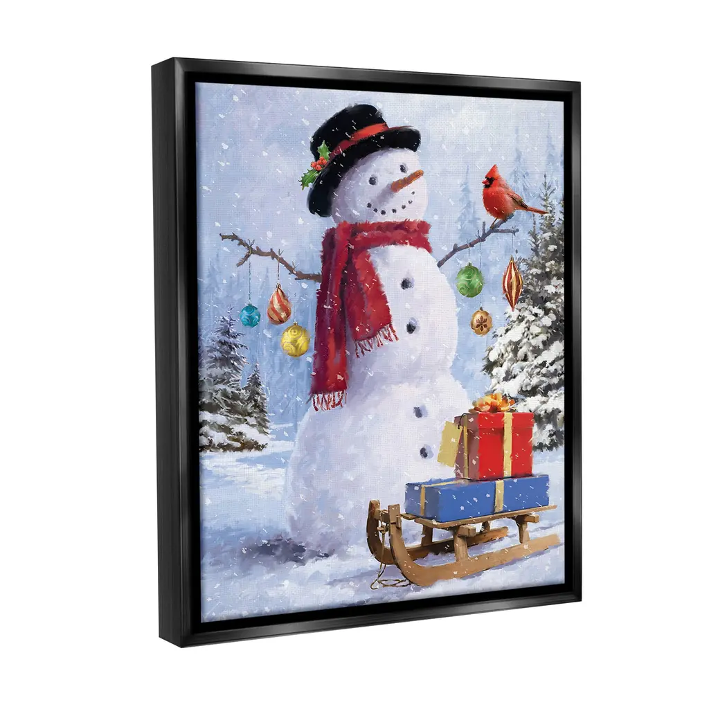 Elevate your home or office to the next level with Stupell Framed Floating Canvas Wall Art. Our premium hand-stretched canvas is mounted securely into a sturdy lightweight frame. The museum-style gap between the wrapped canvas and the box frame gives the illusion of floating artwork. Stupell Wall Art is made in the USA.Features: Dimensions: 17 x 1.7 x 21 Frame, 16 x 1.5 x 20 Canvas ArtFloating Frame Canvas Products are available in sizes 17"x21" and 25"x31". All Floating Frame Canvas Products have a 1.7" Depth.Wall Art is Ready to Hang with Hardware Free Hanging. No Installation required. For Easy Set Up Lean or Layer Artwork on Shelf or Against Wall. Artwork is Permently Fixed into the Frame.Our elevated 1.7" Thick Floating Frame is the perfect complement to our canvas style Wall Art. We use only the highest quality inks in house with industry leading printing solutions. Canvas is hand stretched over a durable wood foundation and then mounted securly into a Modern Box Frame. Made in the USA.Artwork Relates To: Christmas, Holiday, Winter, Snow, Snowflake, Cardinal, Bird, Snowman, Farmhouse, Traditional, Sled, Gift, Present, OrnamentDesign by Jason Kirk
