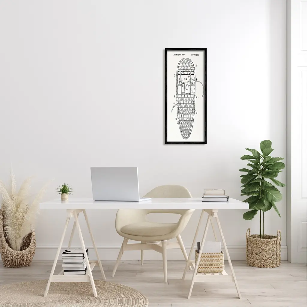 Add dimension to any room with our textured Framed Giclee Artwork. Our framed artwork is securely mounted into a 1.5-inch thick wood grain frame and ready to hang. Frames are available in three alluring styles: black, gray farmhouse and white. In addition, you should check out our oversized options if you want a statement piece. Stupell Wall Art is made in the USA.Features: Dimensions: 10 x 1.5 x 24 FramedFramed Giclee Sizes Include Standard: 10 x 1.5 x 24 Large: 13 x 1.5 x 30Wall Art is Ready to Hang - No Installation or Hardware Needed. For Easy Set Up Lean or Layer Artwork on Shelf or Against Wall.Our giclée prints are carefully mounted on a durable MDF backing, and then perfectly finished in a 1.5 inch thick woodgrain frame. Mounted frame colors include black, gray farmhouse and white. Made In USA.Artwork Relates To: Snowshoe, Winter, Snow, Diagram, Chart, Patent, BlueprintDesign by Lil' Rue