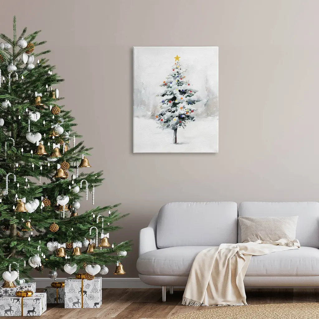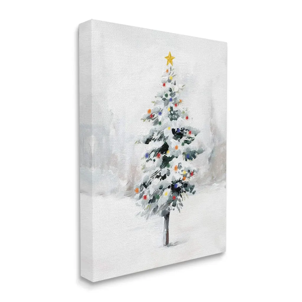 Proudly made in the USA, Our stretched canvas is created with the highest standards. We use only the highest quality inks and canvas on our in house Mimaki printers, and then hand cut and stretch each piece over a 1.5 inch thick wooden frame for hanging. The art comes ready to hang with no installation required.Features: Dimensions: 16 x 1.5 x 20 InchesStretched Canvas Sizes Include Standard: 16 x 1.5 x 20 Large: 20 x 1.5 x 30 X-Large: 30 x 1.5 x 40 Oversized: 36 x 1.5 x 48Wall Art is Ready to Hang - No Installation or Hardware Needed. For Easy Set Up Lean or Layer Artwork on Shelf or Against Wall.Our stretched canvas is created with the highest standards. We use only the highest quality inks and canvas on our in house Mimaki printers, and then hand cut and stretch each piece over a 1.5 inch thick wooden frame for hanging. Made In USA.Artwork Relates To: Christmas Tree, Snow, Holiday, SeasonalDesign by Caverly Smith