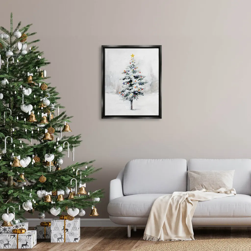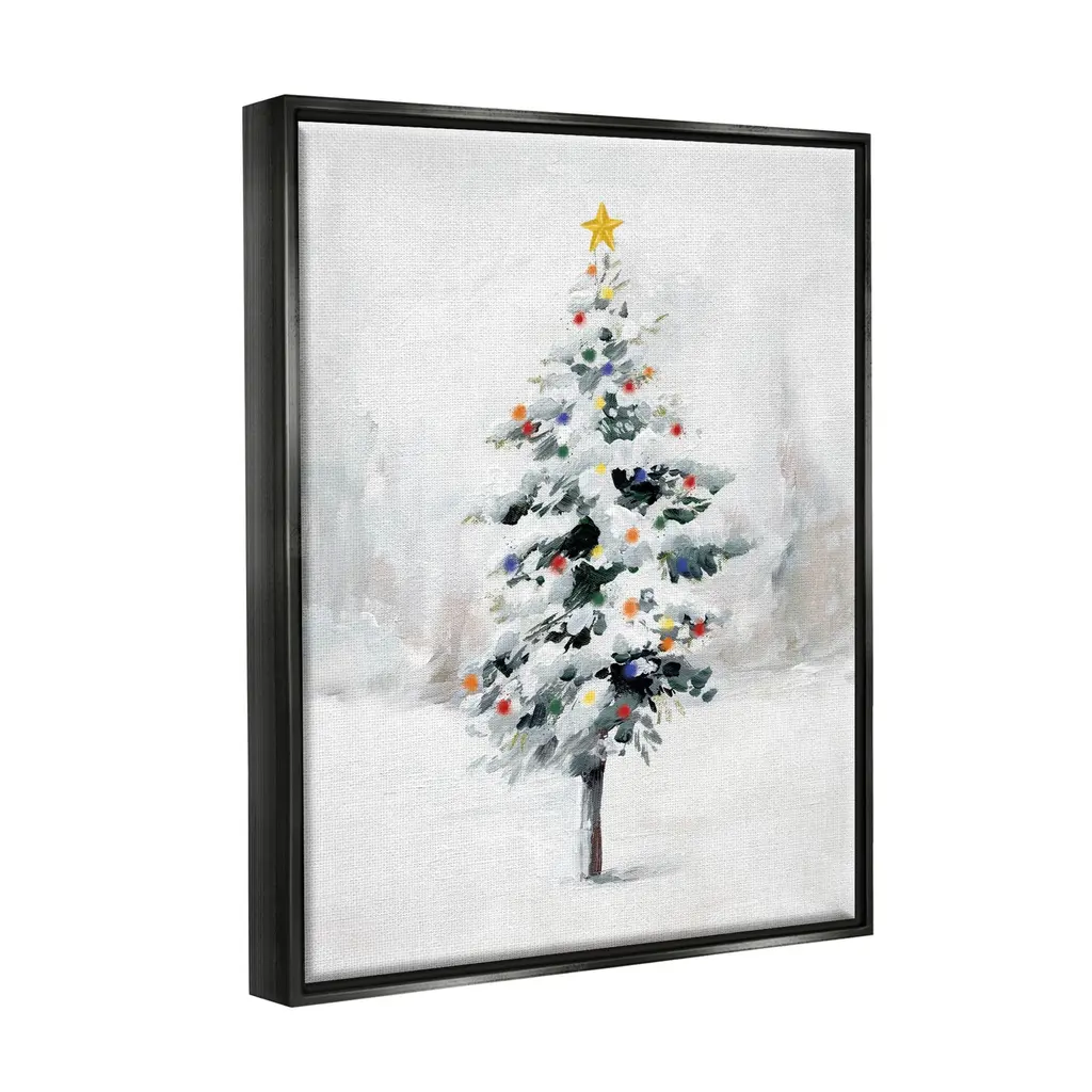 Elevate your home or office to the next level with Stupell Framed Floating Canvas Wall Art. Our premium hand stretched canvas is mounted securly into a sturdy lightweight frame. The museum style gap between wrapped canvas and box frame gives the illusion of floating artwork. Features: Dimensions: 17 x 1.7 x 21 Frame, 16 x 1.5 x 20 Canvas ArtFloating Frame Sizes Include Standard: 17 x 1.7 x 21 Oversized: 25 x 1.7 x 31Wall Art is Ready to Hang - No Installation or Hardware Needed. For Easy Set Up Lean or Layer Artwork on Shelf or Against Wall.Our elevated 1.7" Thick Floating Frame is the perfect complement to our canvas style Wall Art. We use only the highest quality inks in house with industry leading printing solutions. Canvas is hand stretched over a durable wood foundation and then mounted securly into a Modern Box Frame. Made in the USA.Artwork Relates To: Christmas Tree, Snow, Holiday, SeasonalDesign by Caverly Smith