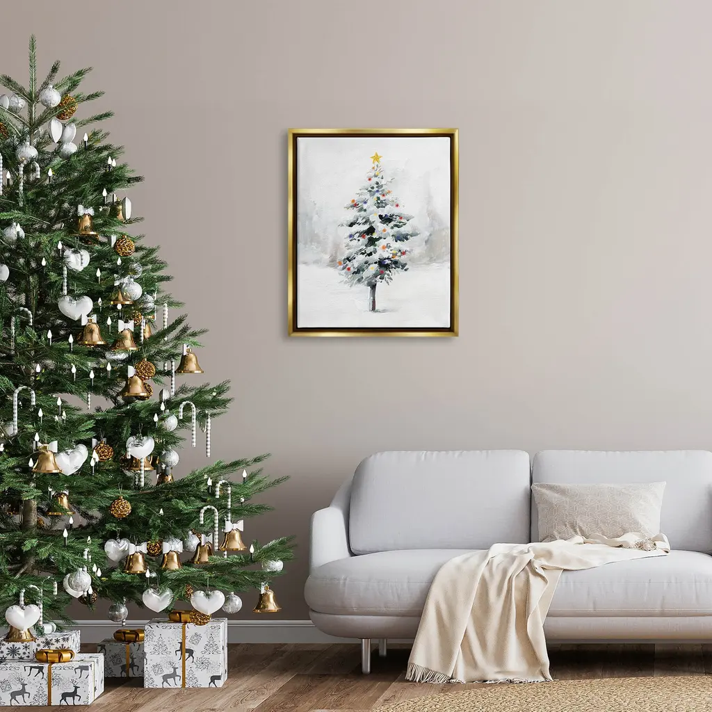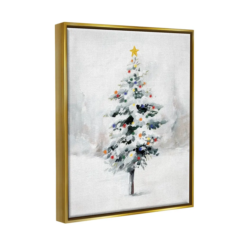 Elevate your home or office to the next level with Stupell Framed Floating Canvas Wall Art. Our premium hand stretched canvas is mounted securly into a sturdy lightweight frame. The museum style gap between wrapped canvas and box frame gives the illusion of floating artwork. Features: Dimensions: 17 x 1.7 x 21 Frame, 16 x 1.5 x 20 Canvas ArtFloating Frame Sizes Include Standard: 17 x 1.7 x 21 Oversized: 25 x 1.7 x 31Wall Art is Ready to Hang - No Installation or Hardware Needed. For Easy Set Up Lean or Layer Artwork on Shelf or Against Wall.Our elevated 1.7" Thick Floating Frame is the perfect complement to our canvas style Wall Art. We use only the highest quality inks in house with industry leading printing solutions. Canvas is hand stretched over a durable wood foundation and then mounted securly into a Modern Box Frame. Made in the USA.Artwork Relates To: Christmas Tree, Snow, Holiday, SeasonalDesign by Caverly Smith