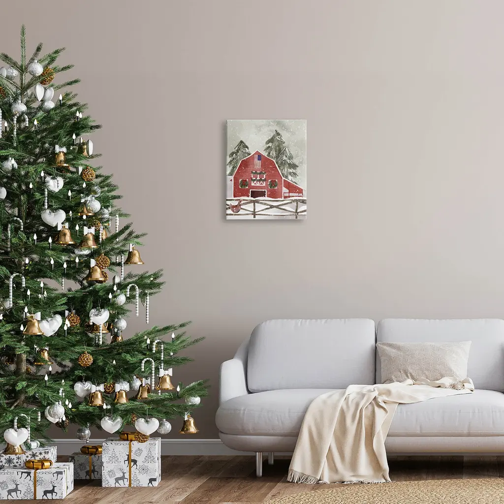 Proudly made in the USA, Our stretched canvas is created with the highest standards. We use only the highest quality inks and canvas on our in house Mimaki printers, and then hand cut and stretch each piece over a 1.5 inch thick wooden frame for hanging. The art comes ready to hang with no installation required.Features: Dimensions: 16 x 1.5 x 20 InchesStretched Canvas Sizes Include Standard: 16 x 1.5 x 20 Large: 20 x 1.5 x 30 X-Large: 30 x 1.5 x 40 Oversized: 36 x 1.5 x 48Wall Art is Ready to Hang - No Installation or Hardware Needed. For Easy Set Up Lean or Layer Artwork on Shelf or Against Wall.Our stretched canvas is created with the highest standards. We use only the highest quality inks and canvas on our in house Mimaki printers, and then hand cut and stretch each piece over a 1.5 inch thick wooden frame for hanging. Made In USA.Artwork Relates To: Barn, Country, Farm, Christmas, Snow, Christmas Tree, Winter, AmericanaDesign by Laura Konyndyk