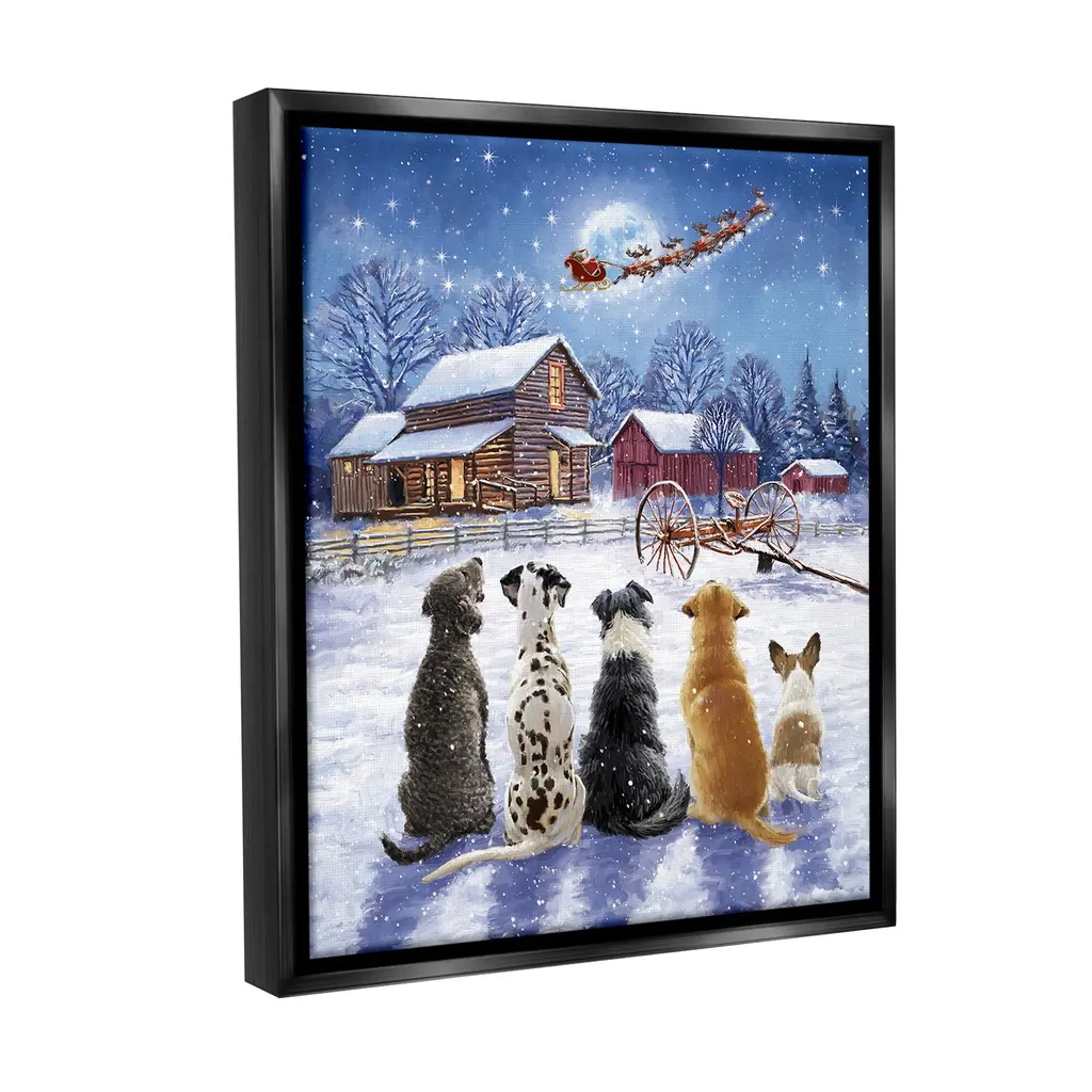 Elevate your home or office to the next level with Stupell Framed Floating Canvas Wall Art. Our premium hand-stretched canvas is mounted securely into a sturdy lightweight frame. The museum-style gap between the wrapped canvas and the box frame gives the illusion of floating artwork. Stupell Wall Art is made in the USA.Features: Dimensions: 17 x 1.7 x 21 Frame, 16 x 1.5 x 20 Canvas ArtFloating Frame Canvas Products are available in sizes 17"x21" and 25"x31". All Floating Frame Canvas Products have a 1.7" Depth.Wall Art is Ready to Hang with Hardware Free Hanging. No Installation required. For Easy Set Up Lean or Layer Artwork on Shelf or Against Wall. Artwork is Permently Fixed into the Frame.Our elevated 1.7" Thick Floating Frame is the perfect complement to our canvas style Wall Art. We use only the highest quality inks in house with industry leading printing solutions. Canvas is hand stretched over a durable wood foundation and then mounted securly into a Modern Box Frame. Made in the USA.Artwork Relates To: Animal, Mammal, Winter, Holiday, Landscape, Snow, Nature, Santa Claus, Barn, Farm, Pet, DogDesign by Ian Saxton