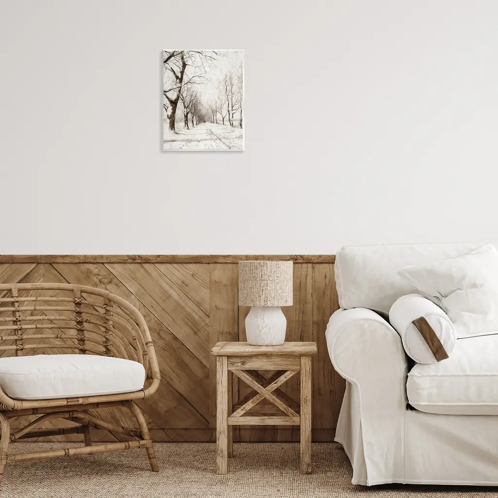 Our wall plaques start as high-quality lithograph prints mounted on durable 0.5-inch thick MDF wood. Each piece is hand finished and comes with a fresh layer of white foil on the sides to give it a crisp, clean look. Plaques arrive ready to hang without installation and come with removable plastic corners to keep them from damage in transit. Stupell Wall Art is made in the USA.Features: Dimensions: 11 x 0.5 x 14 InchesWall Art is Ready to Hang with Hardware Free Hanging. No installation required. For Easy Set Up Lean or Layer Artwork on Shelf or Against Wall.All of our wall plaques start off as high quality lithograph prints that are then mounted on durable 0.5 inch thick MDF wood. Each piece is hand finished and comes with a fresh layer of foil on the sides to give it a crisp clean look. Made In USA.Artwork Relates To: Plant, Tree, Tree Trunk, Nature, Weather, Snow, Winter, People, Woodland, ForestDesign by Lettered and Lined