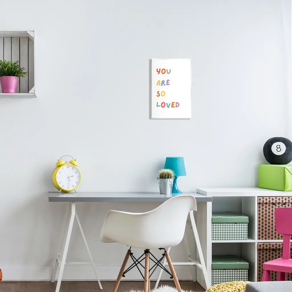Our wall plaques start as high-quality lithograph prints mounted on durable 0.5-inch thick MDF wood. Each piece is hand finished and comes with a fresh layer of white foil on the sides to give it a crisp, clean look. Plaques arrive ready to hang without installation and come with removable plastic corners to keep them from damage in transit. Wall Art is made in the USA.Features: Dimensions: 10 x 0.5 x 15 InchesWall Plaque Sizes Include Standard: 10 x 0.5 x 15 Oversized: 13 x 0.5 x 19Wall Art is Ready to Hang with Hardware Free Hanging. No installation required. For Easy Set Up Lean or Layer Artwork on Shelf or Against Wall.All of our wall plaques start off as high quality lithograph prints that are then mounted on durable 0.5 inch thick MDF wood. Each piece is hand finished and comes with a fresh layer of foil on the sides to give it a crisp clean look. Made In USA.Artwork Relates To: Minimal, Rainbow, You Are So LovedDesign by Katie Griggs