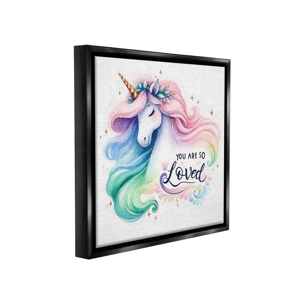 Stupell So Loved Unicorn Framed Floater Canvas Wall Art Design By Amanda Greenwood - 18 X 18 - Black