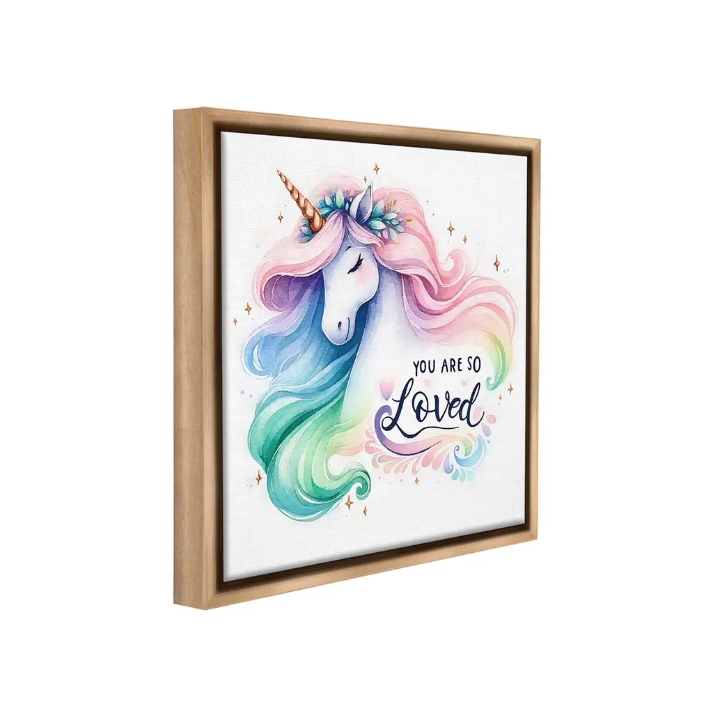 Elevate your home or office to the next level with Stupell Framed Floating Canvas Wall Art. Our premium hand-stretched canvas is mounted securely into a sturdy lightweight frame. The museum-style gap between the wrapped canvas and the box frame gives the illusion of floating artwork. Stupell Wall Art is made in the USA.Features: Dimensions: 18 x 1.7 x 18 Frame, 17 x 1.5 x 17 Canvas ArtFloating Frame Canvas Products are available in sizes 18"x18" and 25"x25". All Floating Frame Canvas Products have a 1.7" Depth.Wall Art is Ready to Hang with Hardware Free Hanging. No Installation required. For Easy Set Up Lean or Layer Artwork on Shelf or Against Wall. Artwork is Permently Fixed into the Frame.Our elevated 1.7" Thick Floating Frame is the perfect complement to our canvas style Wall Art. We use only the highest quality inks in house with industry leading printing solutions. Canvas is hand stretched over a durable wood foundation and then mounted securly into a Modern Box Frame. Made in the USA.Artwork Relates To: Animal, Horse, Unicorn, Fantasy, Pastel, Floral, Botanical, Star, You Are So LovedDesign by Amanda Greenwood