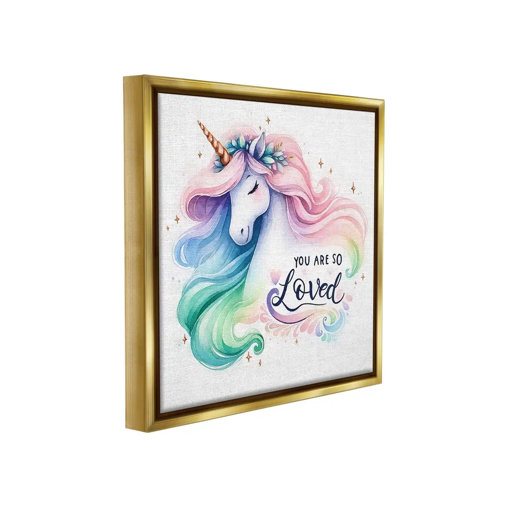 Stupell So Loved Unicorn Framed Floater Canvas Wall Art Design By Amanda Greenwood - 18 X 18 - Gold