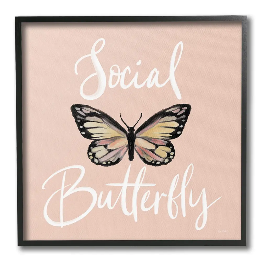 Add dimension to any room with our textured Framed Giclee Artwork. Our framed artwork is securely mounted into a 1.5-inch thick wood grain frame and ready to hang. Frames are available in three alluring styles: black, gray farmhouse and white. In addition, you should check out our oversized options if you want a statement piece. Stupell Wall Art is made in the USA.Features: Dimensions: 12 x 1.5 x 12 FramedFramed Giclee Product Sizes Include 12"x12", 17"x17", and 24"x24". Framed Giclee Products have a 1.5" Depth. Wall Art is Ready to Hang with Hardware Free Hanging. No installation required. For Easy Set Up Lean or Layer Artwork on Shelf or Against Wall.Our giclée prints are carefully mounted on a durable MDF backing, and then perfectly finished in a 1.5 inch thick woodgrain frame. Mounted frame colors include black, gray farmhouse and white. Made In USA.Artwork Relates To: Bug, Animal, Butterfly, Insect, Phrase, Social ButterflyDesign by House Fenway
