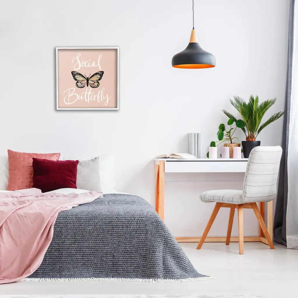 Add dimension to any room with our textured Framed Giclee Artwork. Our framed artwork is securely mounted into a 1.5-inch thick wood grain frame and ready to hang. Frames are available in three alluring styles: black, gray farmhouse and white. In addition, you should check out our oversized options if you want a statement piece. Stupell Wall Art is made in the USA.Features: Dimensions: 12 x 1.5 x 12 FramedFramed Giclee Product Sizes Include 12"x12", 17"x17", and 24"x24". Framed Giclee Products have a 1.5" Depth. Wall Art is Ready to Hang with Hardware Free Hanging. No installation required. For Easy Set Up Lean or Layer Artwork on Shelf or Against Wall.Our giclée prints are carefully mounted on a durable MDF backing, and then perfectly finished in a 1.5 inch thick woodgrain frame. Mounted frame colors include black, gray farmhouse and white. Made In USA.Artwork Relates To: Bug, Animal, Butterfly, Insect, Phrase, Social ButterflyDesign by House Fenway