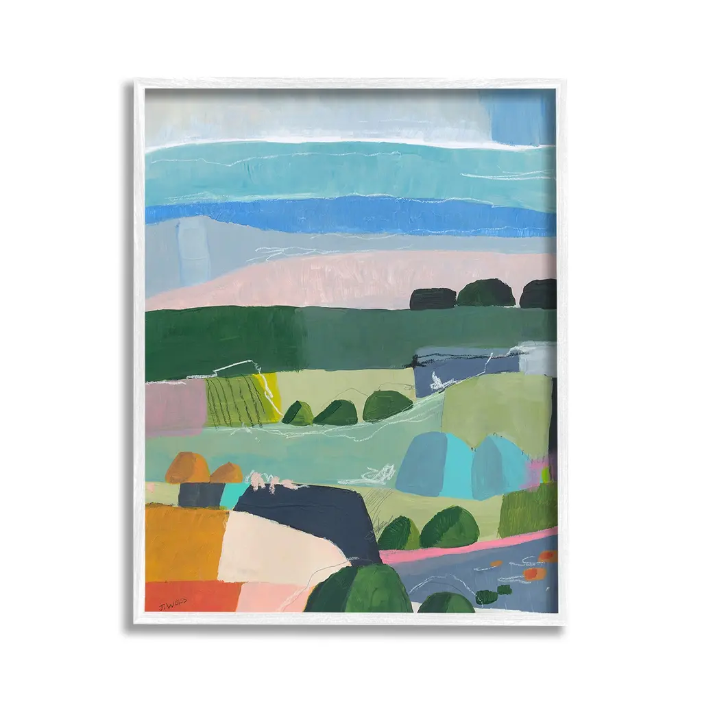 Elevate your home or office to the next level with Stupell Framed Floating Canvas Wall Art. Our premium hand-stretched canvas is mounted securely into a sturdy lightweight frame. The museum-style gap between the wrapped canvas and the box frame gives the illusion of floating artwork. Stupell Wall Art is made in the USA.Features: Dimensions: 17 x 1.7 x 21 Frame, 16 x 1.5 x 20 Canvas ArtFloating Frame Canvas Products are available in sizes 17"x21" and 25"x31". All Floating Frame Canvas Products have a 1.7" Depth.Wall Art is Ready to Hang with Hardware Free Hanging. No Installation required. For Easy Set Up Lean or Layer Artwork on Shelf or Against Wall. Artwork is Permently Fixed into the Frame.Our elevated 1.7" Thick Floating Frame is the perfect complement to our canvas style Wall Art. We use only the highest quality inks in house with industry leading printing solutions. Canvas is hand stretched over a durable wood foundation and then mounted securly into a Modern Box Frame. Made in the USA.Artwork Relates To: Painting, Modern, Abstract, Landscape, Pastel, Contemporary, Scenery, Farmland, Country, Water, River, StreamDesign by Jan Weiss