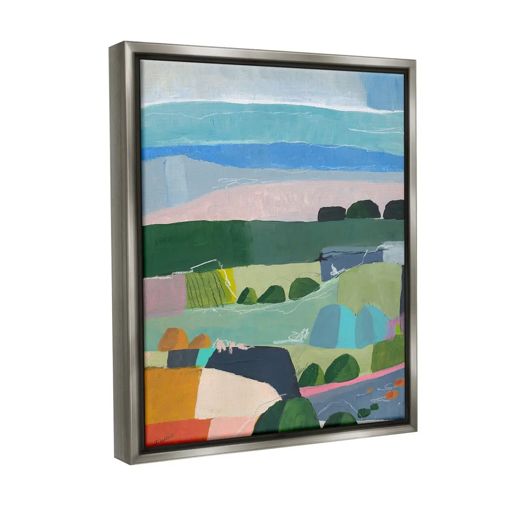 Elevate your home or office to the next level with Stupell Framed Floating Canvas Wall Art. Our premium hand-stretched canvas is mounted securely into a sturdy lightweight frame. The museum-style gap between the wrapped canvas and the box frame gives the illusion of floating artwork. Stupell Wall Art is made in the USA.Features: Dimensions: 17 x 1.7 x 21 Frame, 16 x 1.5 x 20 Canvas ArtFloating Frame Canvas Products are available in sizes 17"x21" and 25"x31". All Floating Frame Canvas Products have a 1.7" Depth.Wall Art is Ready to Hang with Hardware Free Hanging. No Installation required. For Easy Set Up Lean or Layer Artwork on Shelf or Against Wall. Artwork is Permently Fixed into the Frame.Our elevated 1.7" Thick Floating Frame is the perfect complement to our canvas style Wall Art. We use only the highest quality inks in house with industry leading printing solutions. Canvas is hand stretched over a durable wood foundation and then mounted securly into a Modern Box Frame. Made in the USA.Artwork Relates To: Painting, Modern, Abstract, Landscape, Pastel, Contemporary, Scenery, Farmland, Country, Water, River, StreamDesign by Jan Weiss