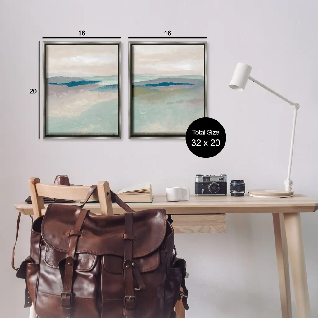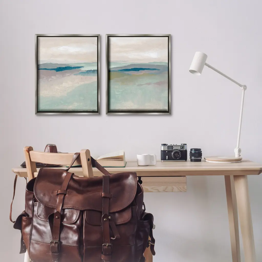 Elevate your home or office to the next level with Stupell Framed Floating Canvas Wall Art. Our premium hand-stretched canvas is mounted securely into a sturdy lightweight frame. The museum-style gap between the wrapped canvas and the box frame gives the illusion of floating artwork. Stupell Wall Art is made in the USA.Features: Dimensions: 2 Piece Set, Each Frame is 17 x 1.7 x 21Two Piece Floater Framed Canvas are available as 17x21 or 25x31 Panels. All Floater Frame Products have a 1.7" Depth.Wall Art is Ready to Hang with Hardware Free Hanging. No Installation required. For Easy Set Up Lean or Layer Artwork on Shelf or Against Wall. Artwork is Permently Fixed into the Frame.Our elevated 1.7" Thick Floating Frame is the perfect complement to our canvas style Wall Art. We use only the highest quality inks in house with industry leading printing solutions. Canvas is hand stretched over a durable wood foundation and then mounted securly into a Modern Box Frame. Made in the USA.Artwork Relates To: Painting, Nature, Scenery, Shoreline, Water, Coast, Lake, Mountain, Field, Beach, Landscape, AbstractDesign by Nikita Jariwala