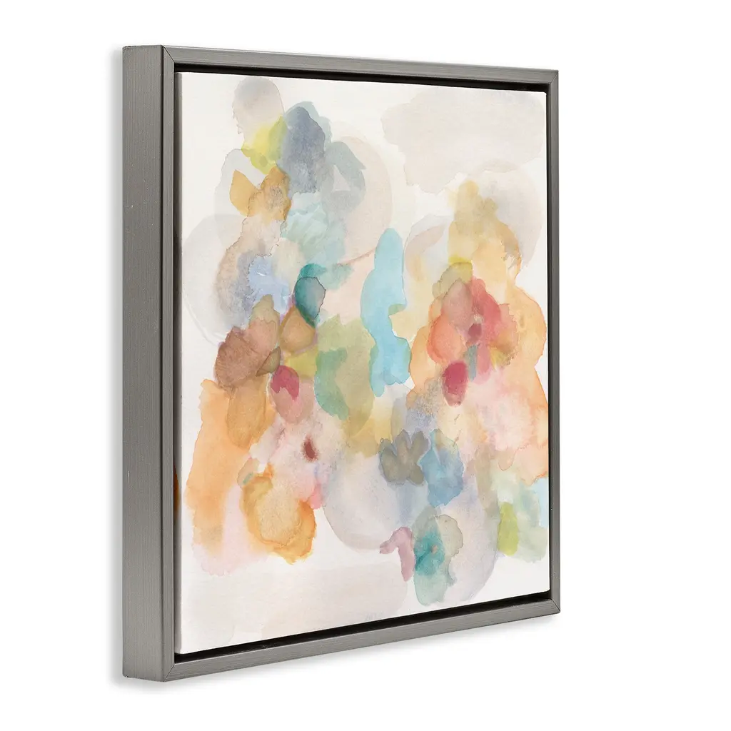 Elevate your home or office to the next level with Stupell Framed Floating Canvas Wall Art. Our premium hand-stretched canvas is mounted securely into a sturdy lightweight frame. The museum-style gap between the wrapped canvas and the box frame gives the illusion of floating artwork. Stupell Wall Art is made in the USA.Features: Dimensions: 18 x 1.7 x 18 Frame, 17 x 1.5 x 17 Canvas ArtFloating Frame Canvas Products are available in sizes 18"x18" and 25"x25". All Floating Frame Canvas Products have a 1.7" Depth.Wall Art is Ready to Hang with Hardware Free Hanging. No Installation required. For Easy Set Up Lean or Layer Artwork on Shelf or Against Wall. Artwork is Permently Fixed into the Frame.Our elevated 1.7" Thick Floating Frame is the perfect complement to our canvas style Wall Art. We use only the highest quality inks in house with industry leading printing solutions. Canvas is hand stretched over a durable wood foundation and then mounted securly into a Modern Box Frame. Made in the USA.Artwork Relates To: Painting, Watercolor, Soft, Modern, Pastel, AbstractDesign by Jodi Fuchs