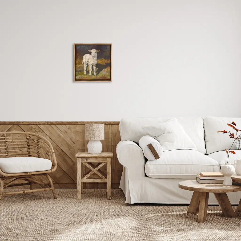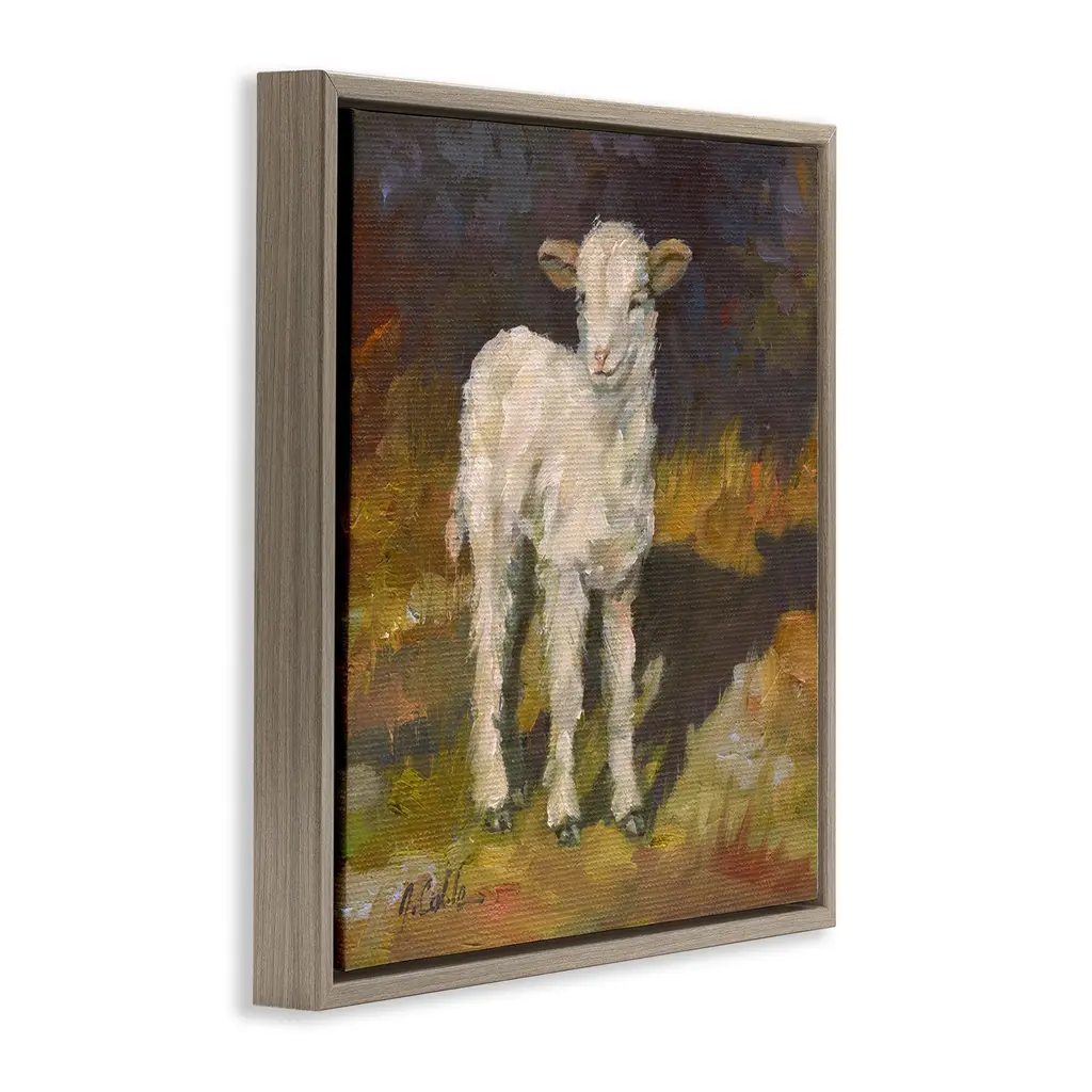 Elevate your home or office to the next level with Stupell Framed Floating Canvas Wall Art. Our premium hand-stretched canvas is mounted securely into a sturdy lightweight frame. The museum-style gap between the wrapped canvas and the box frame gives the illusion of floating artwork. Stupell Wall Art is made in the USA.Features: Dimensions: 18 x 1.7 x 18 Frame, 17 x 1.5 x 17 Canvas ArtFloating Frame Canvas Products are available in sizes 18"x18" and 25"x25". All Floating Frame Canvas Products have a 1.7" Depth.Wall Art is Ready to Hang with Hardware Free Hanging. No Installation required. For Easy Set Up Lean or Layer Artwork on Shelf or Against Wall. Artwork is Permently Fixed into the Frame.Our elevated 1.7" Thick Floating Frame is the perfect complement to our canvas style Wall Art. We use only the highest quality inks in house with industry leading printing solutions. Canvas is hand stretched over a durable wood foundation and then mounted securly into a Modern Box Frame. Made in the USA.Artwork Relates To: Animal, Farm, Country, Painting, Sheep, Lamb, FarmhouseDesign by Jerry Cable