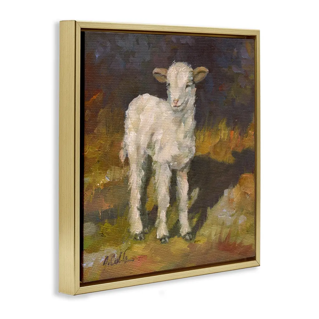 Stupell Soft Baby Lamb Painting Framed Floater Canvas Wall Art Design By Jerry Cable - 25 X 25 - Gold