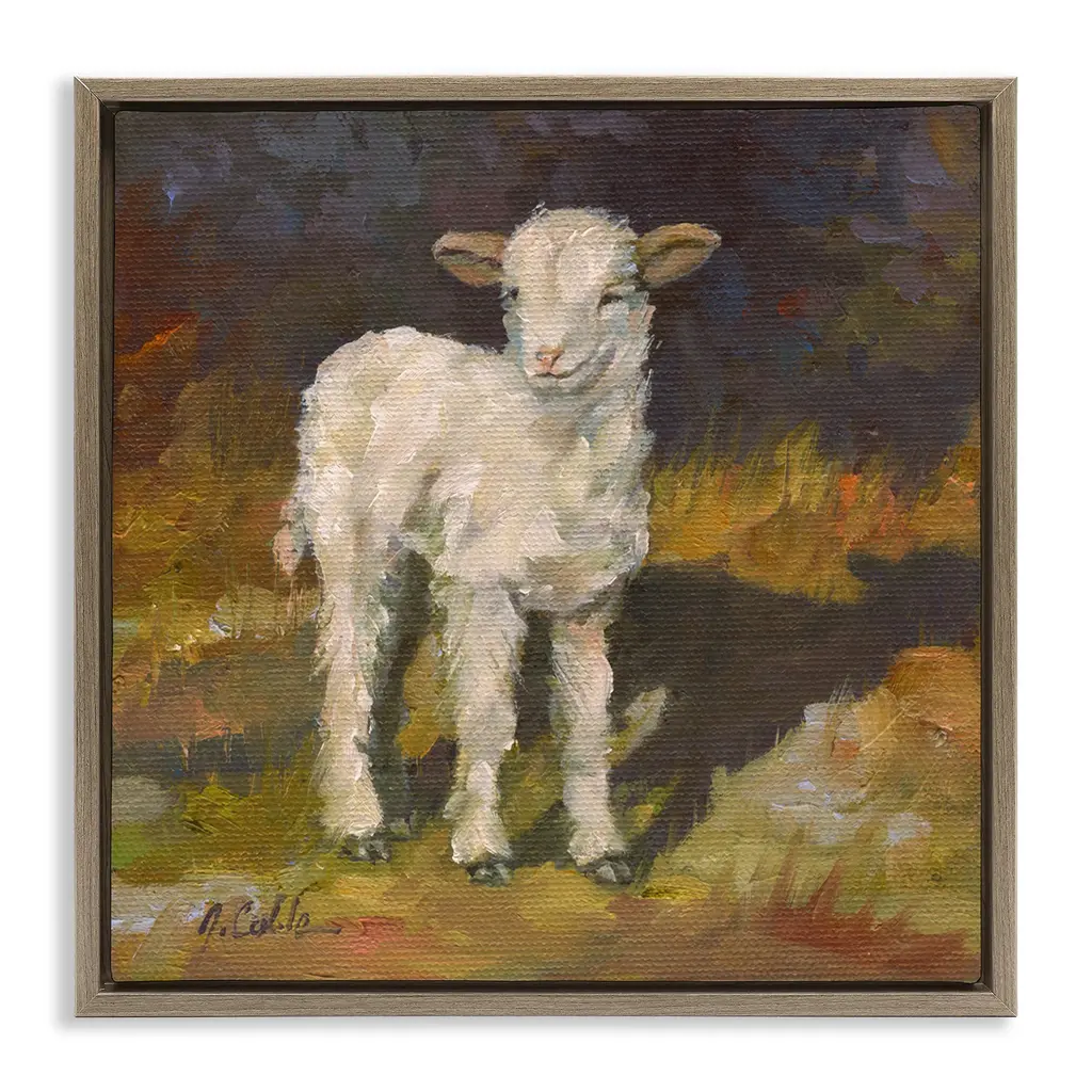 Elevate your home or office to the next level with Stupell Framed Floating Canvas Wall Art. Our premium hand-stretched canvas is mounted securely into a sturdy lightweight frame. The museum-style gap between the wrapped canvas and the box frame gives the illusion of floating artwork. Stupell Wall Art is made in the USA.Features: Dimensions: 18 x 1.7 x 18 Frame, 17 x 1.5 x 17 Canvas ArtFloating Frame Canvas Products are available in sizes 18"x18" and 25"x25". All Floating Frame Canvas Products have a 1.7" Depth.Wall Art is Ready to Hang with Hardware Free Hanging. No Installation required. For Easy Set Up Lean or Layer Artwork on Shelf or Against Wall. Artwork is Permently Fixed into the Frame.Our elevated 1.7" Thick Floating Frame is the perfect complement to our canvas style Wall Art. We use only the highest quality inks in house with industry leading printing solutions. Canvas is hand stretched over a durable wood foundation and then mounted securly into a Modern Box Frame. Made in the USA.Artwork Relates To: Animal, Farm, Country, Painting, Sheep, Lamb, FarmhouseDesign by Jerry Cable