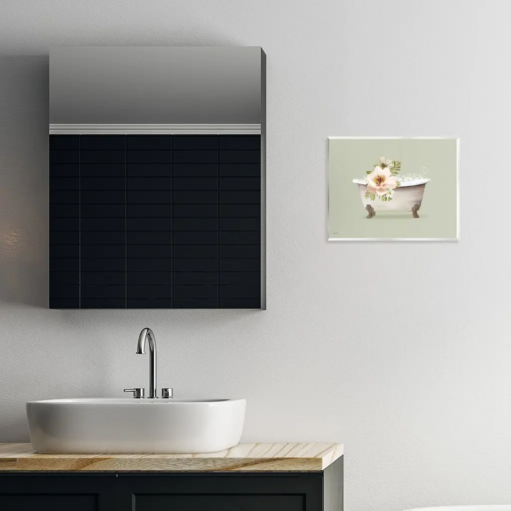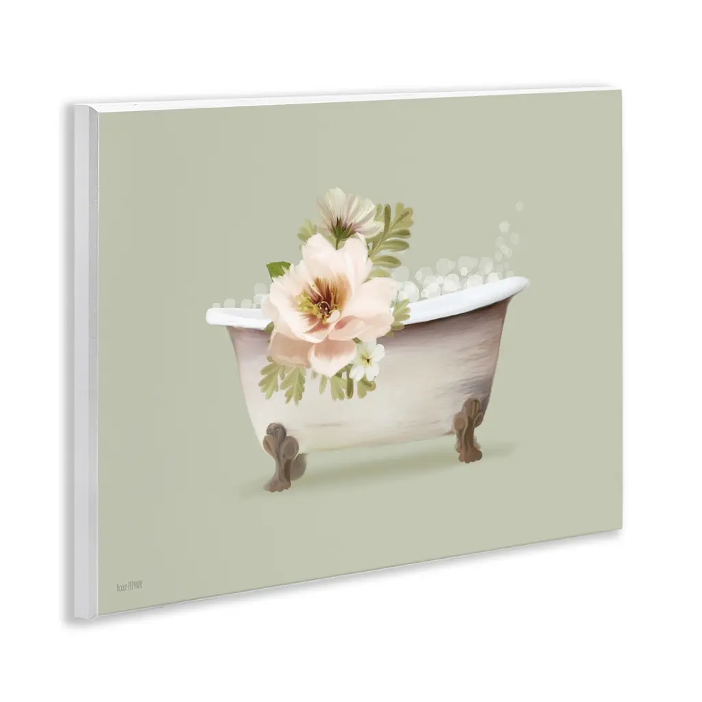 Our wall plaques start as high-quality lithograph prints mounted on durable 0.5-inch thick MDF wood. Each piece is hand finished and comes with a fresh layer of white foil on the sides to give it a crisp, clean look. Plaques arrive ready to hang without installation and come with removable plastic corners to keep them from damage in transit. Stupell Wall Art is made in the USA.Features: Dimensions: 14 x 0.5 x 11 InchesWall Art is Ready to Hang with Hardware Free Hanging. No installation required. For Easy Set Up Lean or Layer Artwork on Shelf or Against Wall.All of our wall plaques start off as high quality lithograph prints that are then mounted on durable 0.5 inch thick MDF wood. Each piece is hand finished and comes with a fresh layer of foil on the sides to give it a crisp clean look. Made In USA.Artwork Relates To: Bathroom, Bath, Tub, Flower, FloralDesign by House Fenway