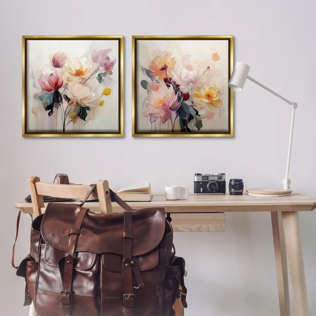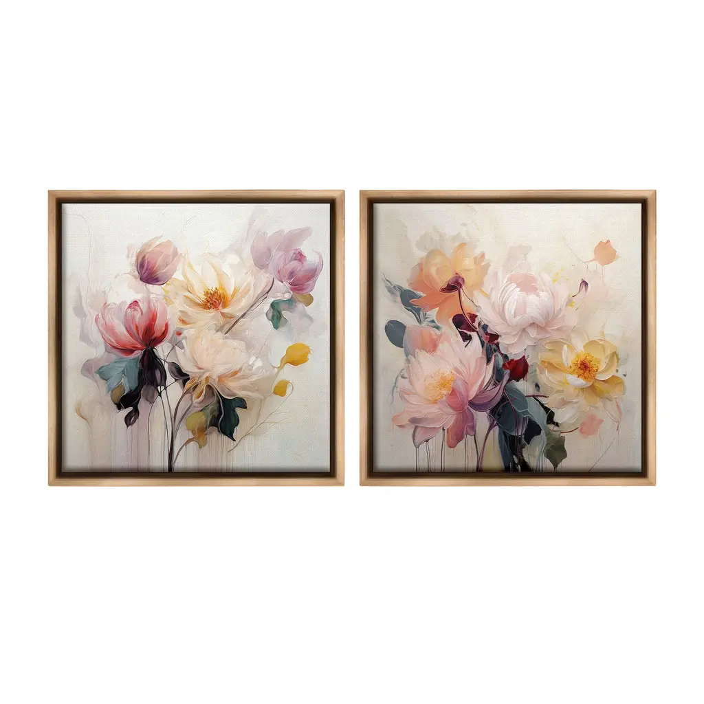 Elevate your home or office to the next level with Stupell Framed Floating Canvas Wall Art. Our premium hand-stretched canvas is mounted securely into a sturdy lightweight frame. The museum-style gap between the wrapped canvas and the box frame gives the illusion of floating artwork. Stupell Wall Art is made in the USA.Features: Dimensions: 2 Piece Set, Each Frame is 18 x 1.7 x 18Two Piece Floating Frame Canvas Products are available as 18"x18" or 25"x25" Panels. All Floating Frame Canvas Products have a 1.7" Depth.Wall Art is Ready to Hang with Hardware Free Hanging. No Installation required. For Easy Set Up Lean or Layer Artwork on Shelf or Against Wall. Artwork is Permently Fixed into the Frame.Our elevated 1.7" Thick Floating Frame is the perfect complement to our canvas style Wall Art. We use only the highest quality inks in house with industry leading printing solutions. Canvas is hand stretched over a durable wood foundation and then mounted securly into a Modern Box Frame. Made in the USA.Artwork Relates To: Floral, Pattern, Flower, Petal, Plant, Botanical, Bouquet, ModernDesign by Irena Orlov