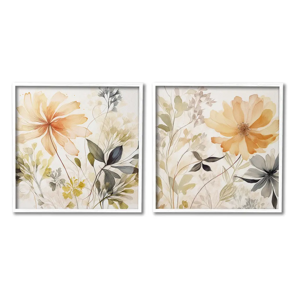 Fill any space in your home or office with our Framed Wall Art Sets. Our framed artwork is securely mounted into a 1.5-inch thick wood grain frame and ready to hang. Frames are available in three alluring styles: black, gray farmhouse and white. Stupell Wall Art is made in the USA.Features: Dimensions: 2 Piece Set, Each Panel is 12 x 1.5 x 12 FramedTwo Piece Framed Giclee Sets are available as 12"x12", 17"x17" or 24"x24" Panels. All Framed giclee Products have a 1.5" Depth.Wall Art is Ready to Hang with Hardware Free Hanging. No installation required. For Easy Set Up Lean or Layer Artwork on Shelf or Against Wall.Curated Wall Art Sets make it easy for you complete the theme for any room. Our giclée prints are carefully mounted on a durable MDF backing, and then perfectly finished in a 1.5 inch thick woodgrain frame. Mounted frame colors include black, gray farmhouse and white. Made In USA.Artwork Relates To: Floral, Pattern, Flower, Petal, Plant, Botanical, Bouquet, ModernDesign by Irena Orlov