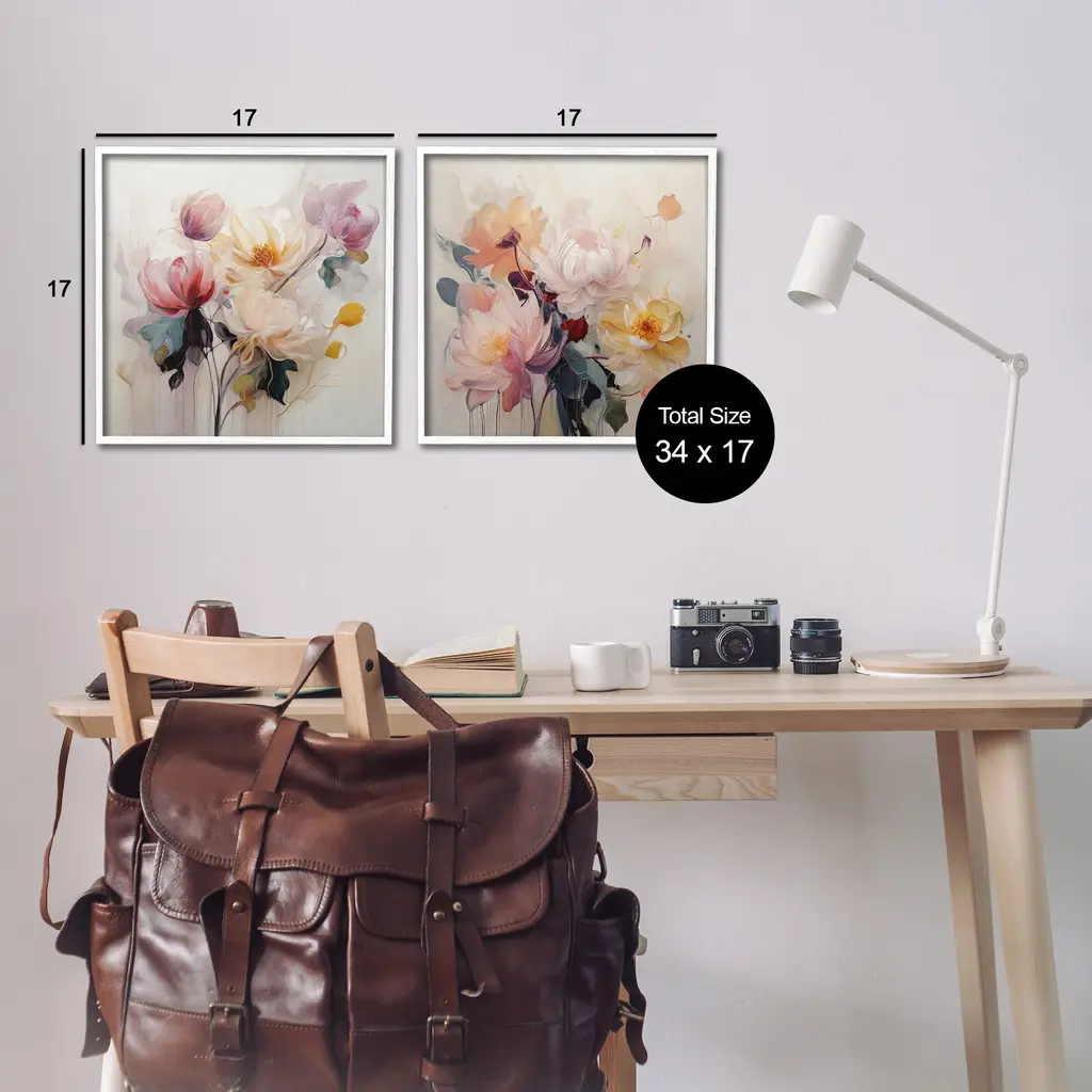 Stupell Soft Blooms On Beige Framed Giclee Art Design By Irena Orlov (Set Of 2) - 17 X 17 - White
